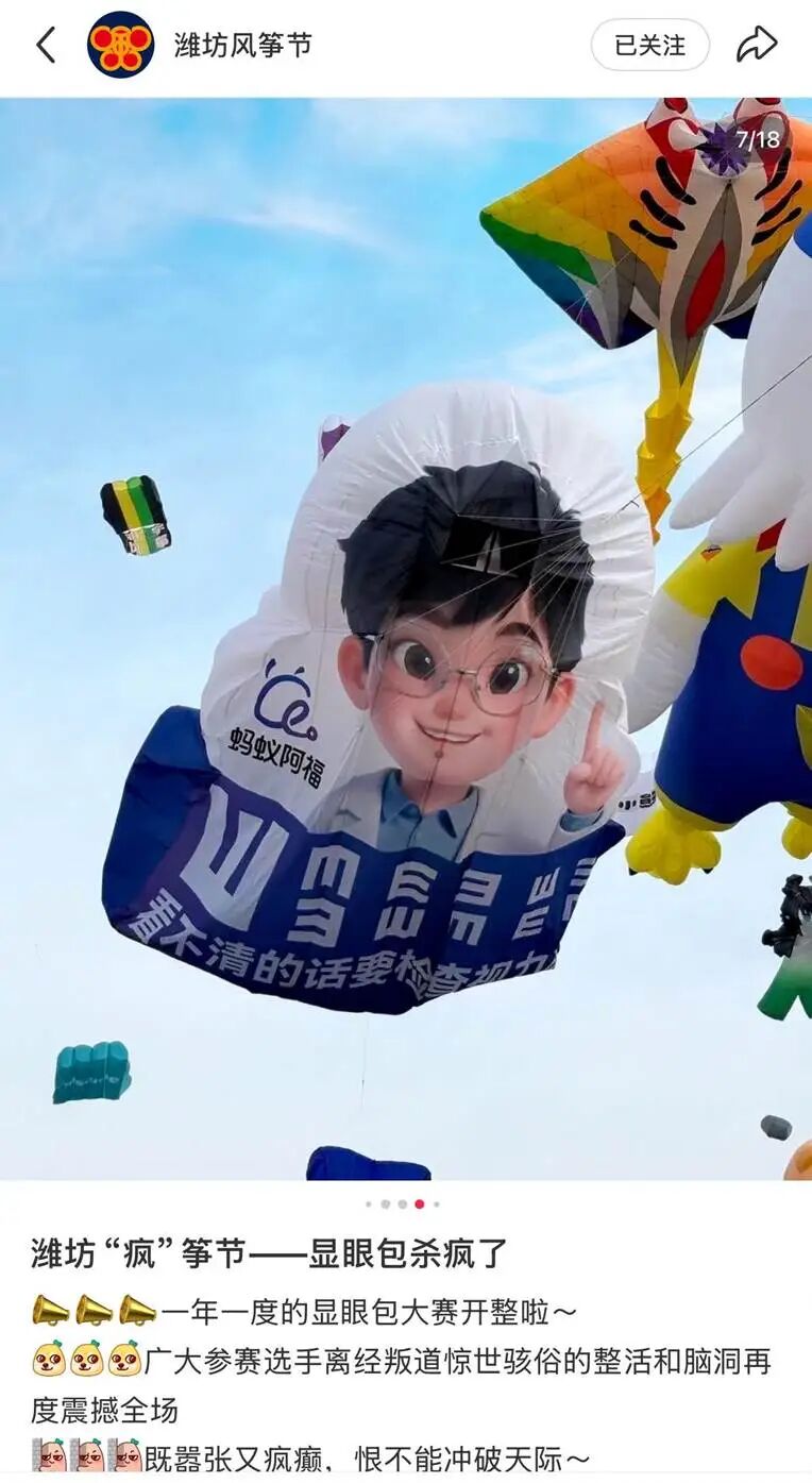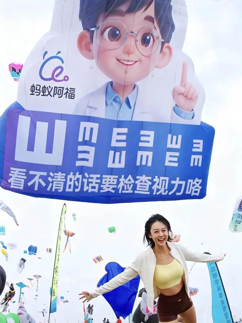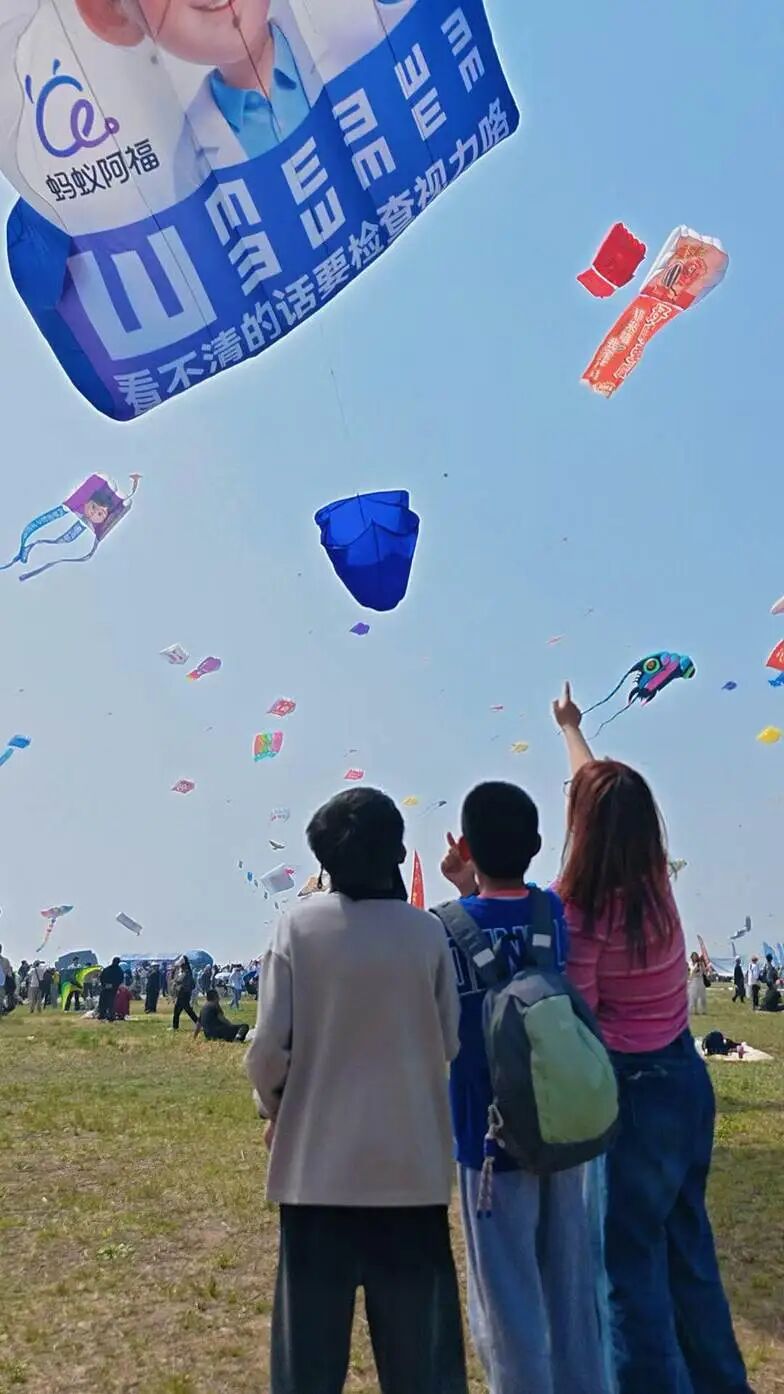 纷纷繁繁中,空中出现一份视力表,随风摇摆,没有看错,忍不住做起了视力测试,第一次做如此遥远的视力测试……一时间,微博抖音小红书上……也都是风筝,也有很多很多双眼睛发现了这只叫“阿福”的风筝。