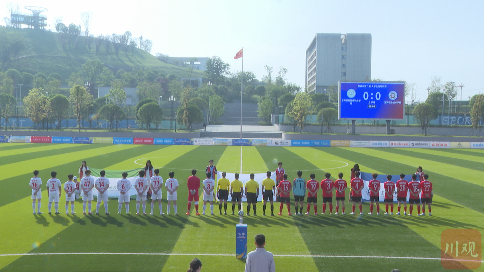 与此同时,宜宾医药健康职业学院的足球场上,第二届大学生足球联赛同样激情上演。东道主宜宾医药健康职业学院迎战宜宾职业技术学院,双方展开激烈角逐。宜宾医药健康职业学院凭借主场优势多次发起边路突破,宜宾职院则稳守反击,依靠默契配合寻找破门机会。最终,宜宾职业技术学院以3:1的比分战胜对手,赢得胜利。