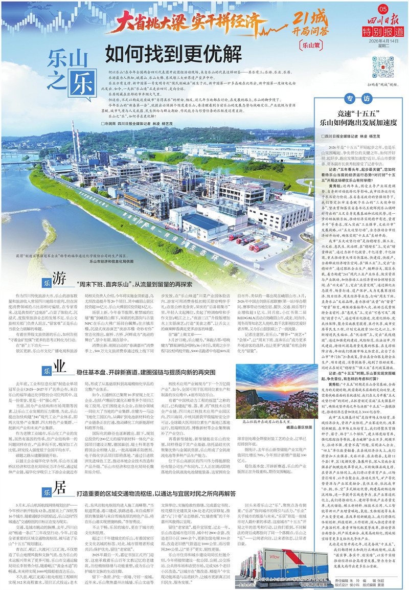 本周,乐山聚焦乐游、乐业、乐居核心命题,直面发展短板、明晰攻坚路径,以系统谋划推动城市能级跃升,全力破解“发展放缓”之问,让城市之“乐”更有支撑、更具质感。这一解答思路在《四川日报》整版刊发。