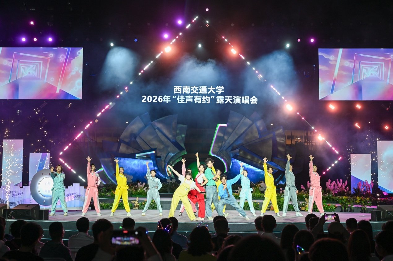 当晚,演唱会在西南交通大学子弟小学小朋友们演绎的《梦想从这里起飞》中启幕,稚嫩的童腔唱出对未来的期许,也勾勒出代代交大人追梦的初心。随后,校友、师生倾情献唱,《百卅回响,予我以歌》中的原创曲目与经典歌曲交替呈现:一曲《山川情书》唱出交大人奋斗路上最深情的告白;《此间少年》唱出交大学子并肩赴山海、不负韶华的青春担当;《九里四季》倾诉岁月流转;《犀安路999号》则是交大人共同的记忆;《我在交大等你》满含期盼诉说着母校与学子的双向奔赴;一首《成都》道出了交大与城市的联结,引来全场大合唱……