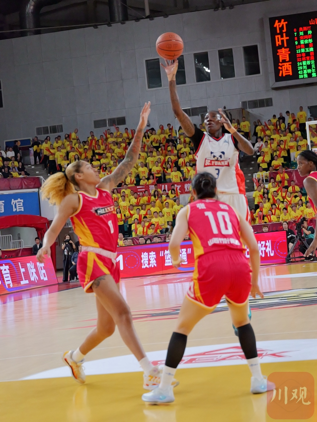 末节赛场,四川女篮始终保持沉稳态势,稳步扩大领先优势,一度将分差扩大至20分以上。尽管山西女篮在外线发起反扑,但四川女篮队员们沉着应战,成功顶住对手一波又一波的冲击,守住胜果。
