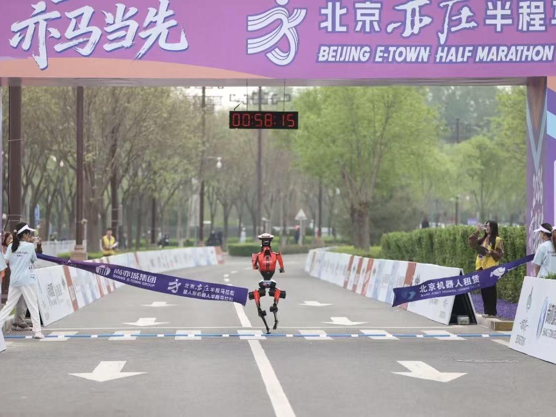 4月19日上午,2026北京亦庄半程马拉松暨人形机器人半程马拉松拉开帷幕。最终,齐天大圣队的机器人“闪电”以50分26秒夺冠。