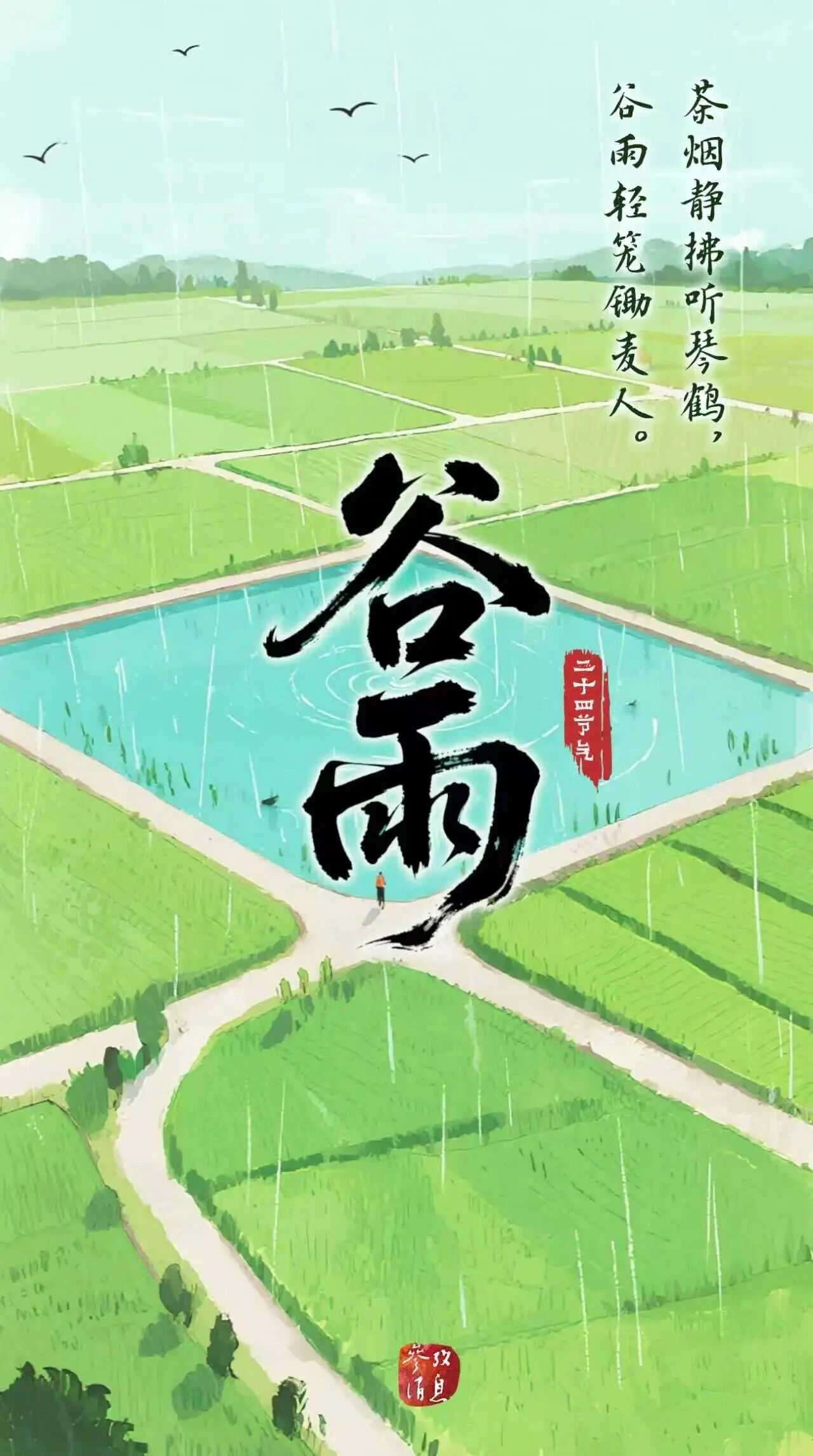 “谷雨春光晓,山川黛色青。”今日谷雨,是中国传统二十四节气中的第六个节气,也是春季的最后一个节气。此时气温回升加快、雨水日渐丰沛,春将尽、夏将至,天地间一派暮春盛景。谷雨之名,源自古人“雨生百谷”之说。《月令七十二候集解》中记载:“三月中,自雨水后,土膏脉动,今又雨其谷于水也……盖谷以此时播种,自上而下也。”《群芳谱》亦云:“谷雨,谷得雨而生也。”一个“谷”字道出庄稼的希望,一个“雨”字点明时节的甘霖,二字相合,蕴涵着春雨润泽、万物生长的朴素智慧,也奠定了谷雨在农耕文明中的特殊地位。古人将谷雨节气十五天分为三候,细腻勾勒出暮春的生动图景:一候萍始生,二候鸣鸠拂其羽,三候戴胜降于桑。说的是谷雨之后,雨水增多、气温回暖,池塘与湖面之上浮萍悄然萌发;五日后,布谷鸟(鸣鸠)振翅啼鸣,仿佛催促农人“快快布谷”,莫误春播;再过五日,羽冠华美的戴胜鸟飞临桑树枝头,寻觅虫食,也预示着养蚕缫丝的时节已然临近。“杨花落尽子规啼”,柳絮飞落、杜鹃夜啼、牡丹吐蕊、樱桃红熟……自然景物无声告示着人们:暮春已至,夏日将临。在这春夏交接的节气里,天地间既有惜春的淡淡留恋,更有迎夏的勃勃生机。视觉设计 | 栾晓雁 文字 | 平悦