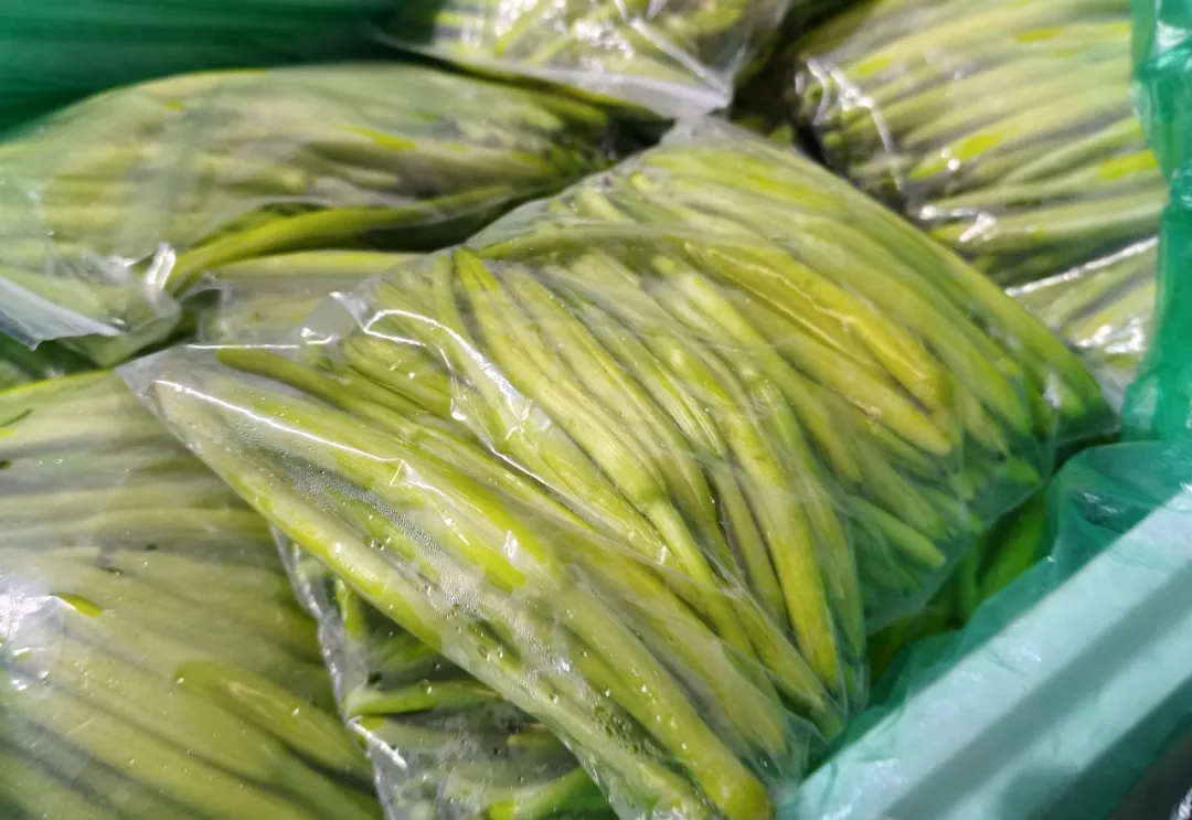 在交易中心做了多年生意的郑家贵,算是春菜的“老行家”了。他的冷库里,藏着一堆“宝贝”。角落里,嫩绿嫩绿的黄花菜被打包得整整齐齐。“现在最嫩,凉拌一绝!等开了花,晒干了,干黄花菜,拿来烧肉很多人都爱吃。”郑家贵告诉记者,黄花菜清明前后上市,批发价20元一斤,现在一天也能卖个100多斤。“鲜黄花菜虽然是小众菜,但懂吃的人都知道,这口春日嫩劲,过了这阵就没了。”