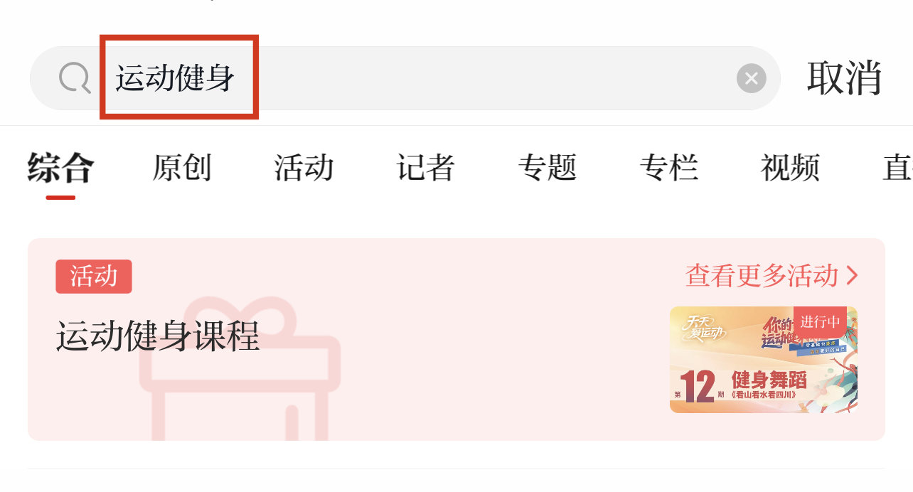 在川观新闻首页顶部搜索框输入“运动健身”,点击活动链接即可参与。