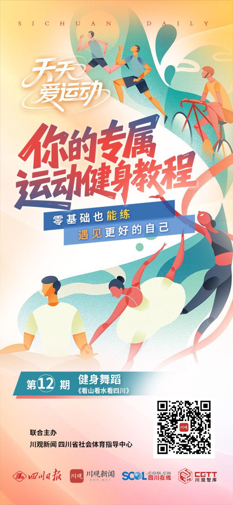 继第11期《we rock to chengdu》健身舞,帮大家跳出动感、瘦出状态后,川观新闻运动健身课程第12期上线,本期将带你体验川味十足的《看山看水看四川》。别再死磕枯燥器械、硬熬减脂苦役了,春日正好,微风不燥,跟着四川特色旋律,跳出优美律动和动感舞姿,在欢快的舞步里燃脂塑形,趁夏季还没完全来临,抓紧时间练出紧致线条,穿什么都好看!