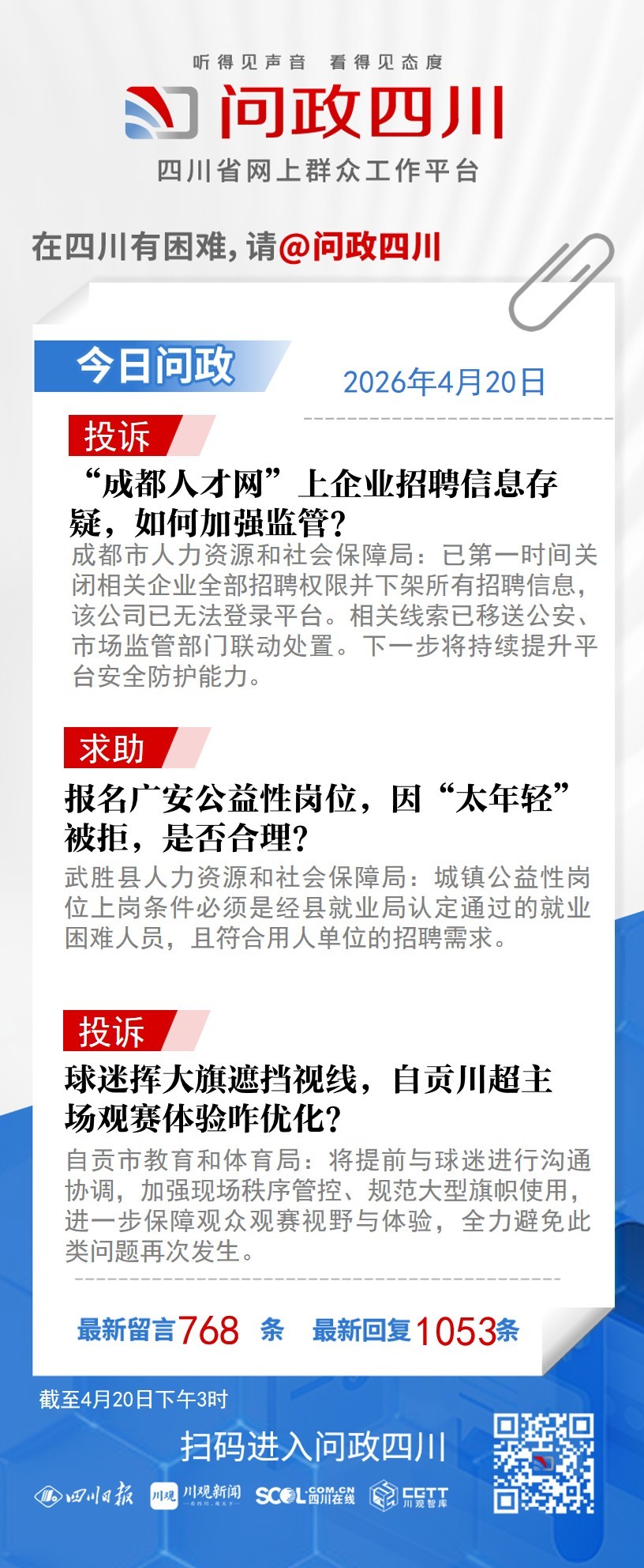 问政四川网友提问:2026年4月10日下午,我在“成都人才网”上找工作,首页推荐列表出现了一家名为“成都享棋安锦科技有限公司”的企业,预留地址是成都市新都区斑竹园街道。该公司诱导我前往第三方软件,疑似进行诈骗。本人已在青白江区报警立案,请问招聘平台如何加强监管?