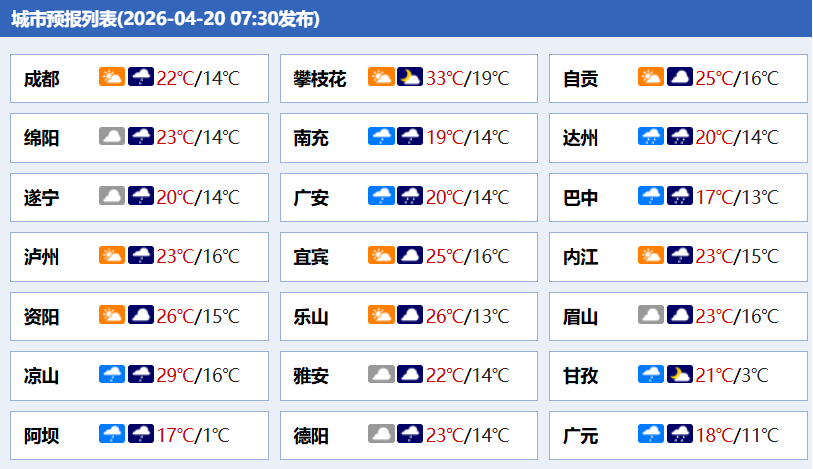 大家好!今天是4月20日,星期一,欢迎进入早读四川!每天2分钟,让你更懂四川。