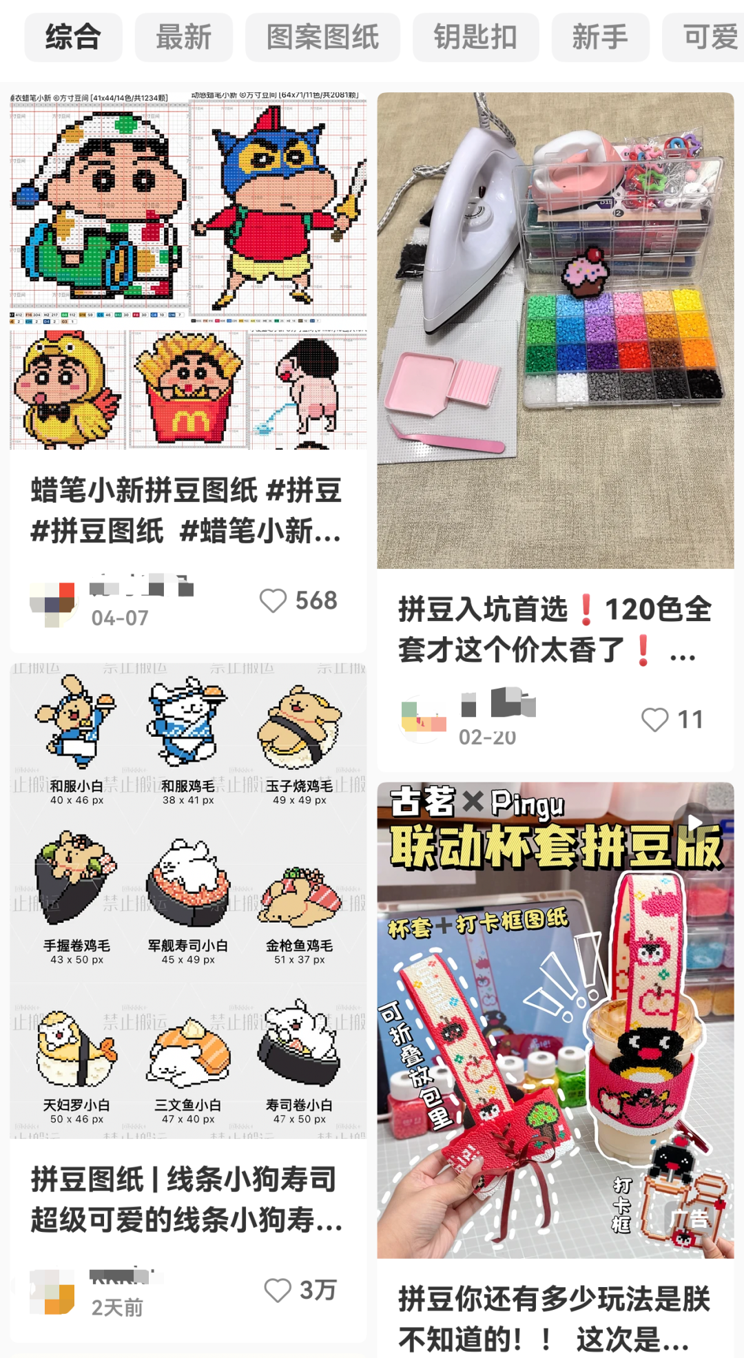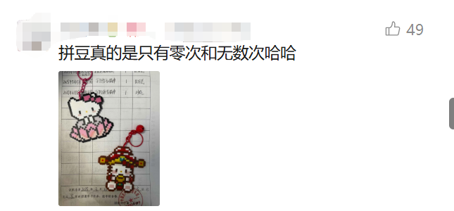 完成一个拼豆作品后,分享到社交媒体上就能收获很多点赞——这种对于“社交认同”的渴望,也成了不少人沉迷拼豆的乐趣之一。
