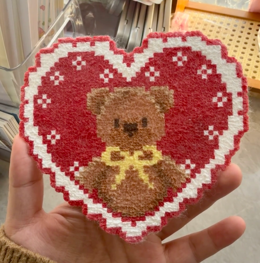 拼豆时,指尖的触感、眼睛的追踪、手腕的精细动作,都在不断强化“我在做这件事”的在场感。相比虚拟游戏或屏幕互动,拼豆提供了触觉、视觉和听觉等的多感官输入,这种具身化体验让认知参与度更高,满足感也更真实。更重要的是,最终产出的实体作品是可触摸的,这比虚拟成就更能激活大脑的奖赏系统,带来深层次的满足。