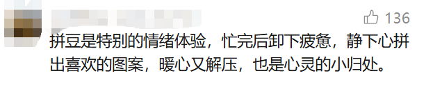 据“科普中国”消息,真正让年轻人从“喜爱”到“沉迷”的,可能还在于拼豆带来的情绪价值。