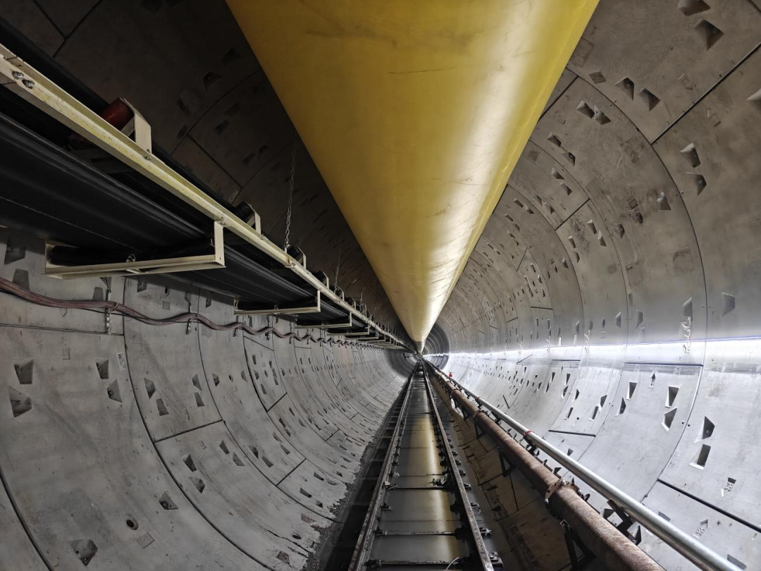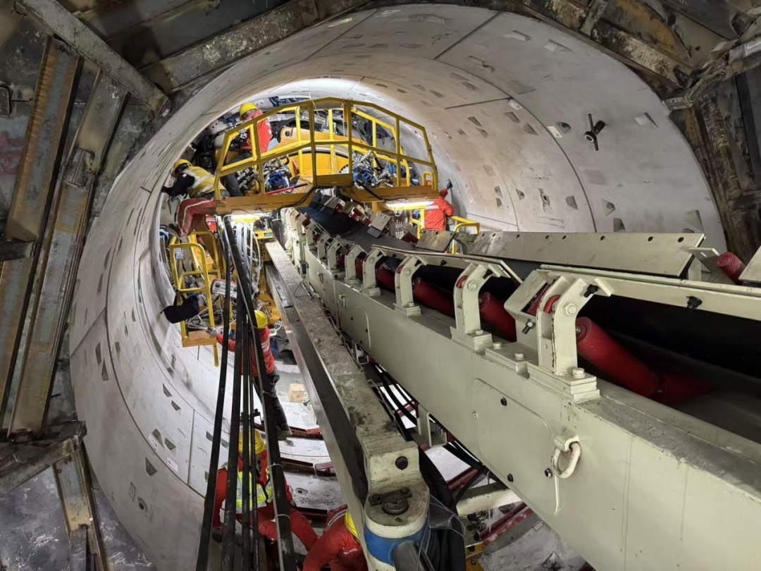 作为湖南省首台应用于水利工程的TBM设备,“梅山蛮”号开挖直径5.4米,集开挖、支护、出渣于一体。项目团队面对隧洞沿线断层破碎带、泥夹石等复杂地质挑战,精心组织、科学施工,不断优化掘进参数,确保设备高效稳定运行,日进尺达24米,充分展现了TBM智能建造的技术优势。