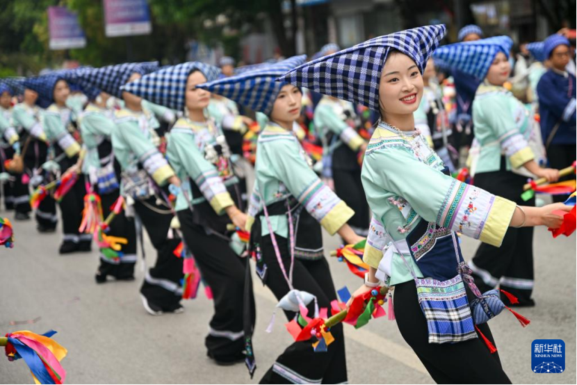 4月19日,贵州省黔西南布依族苗族自治州望谟县举行“三月三”民族文化活动,人们欢聚一堂,共庆传统佳节。
