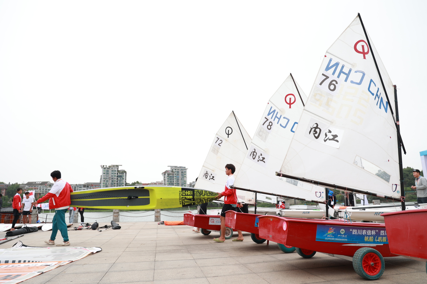 这是本届省运会在全省范围内率先开战的水上项目,也是内江赛区的“首秀”。比赛所在地位于内江市市中区甜城湖三段水域,沱江水面开阔、水流平缓,是开展帆船、帆板、冲浪等水上运动的天然优质赛场。
