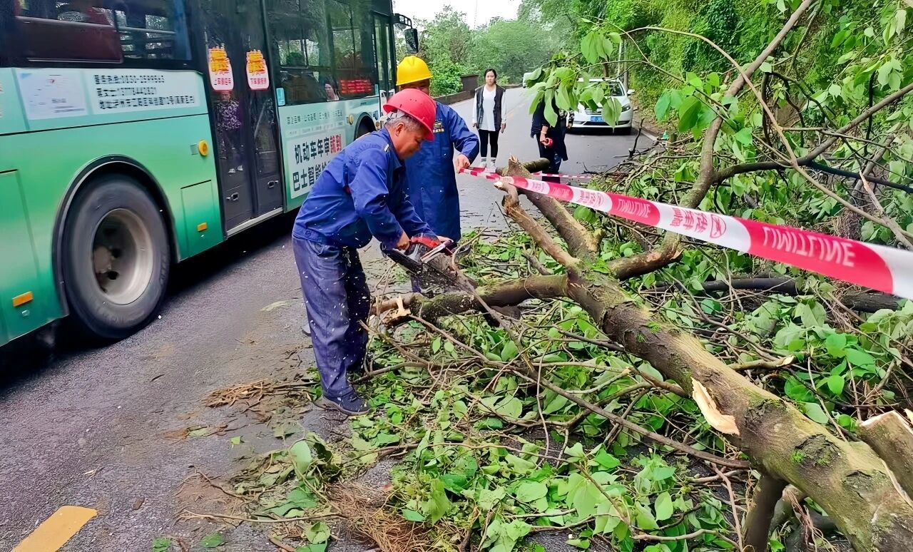 同时,泸州市防汛防地灾联合指挥部指令消防、综合应急救援队伍及镇村“一主两辅”队伍,前往受灾较重点位、山洪危险区、地灾隐患点等重点区域避险转移420人,并做好安置救助、安全管控,确保“不安全不返回”;指令经信、水务、城管、国网供电公司等部门(单位)组织开展城市排涝、电力抢修。截至20日7时,24处城市积水点已完成排涝,47条停运线路已恢复供电。(泸州市应急管理局供图)