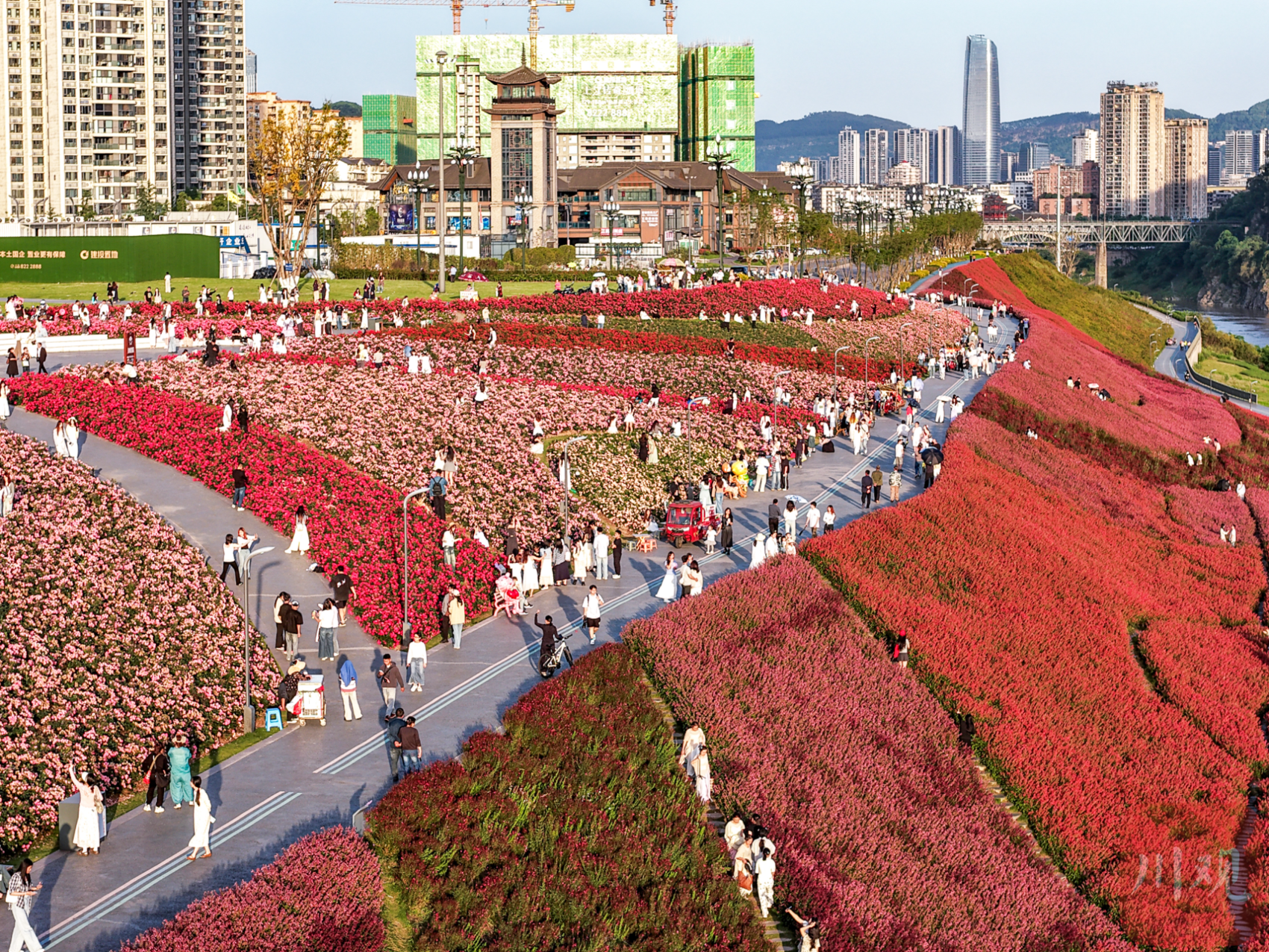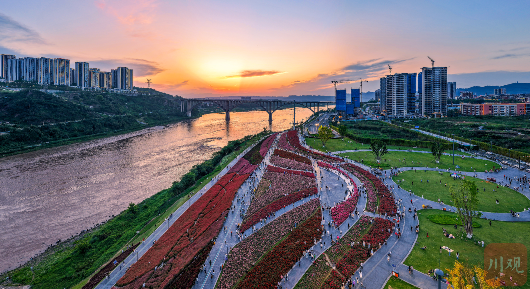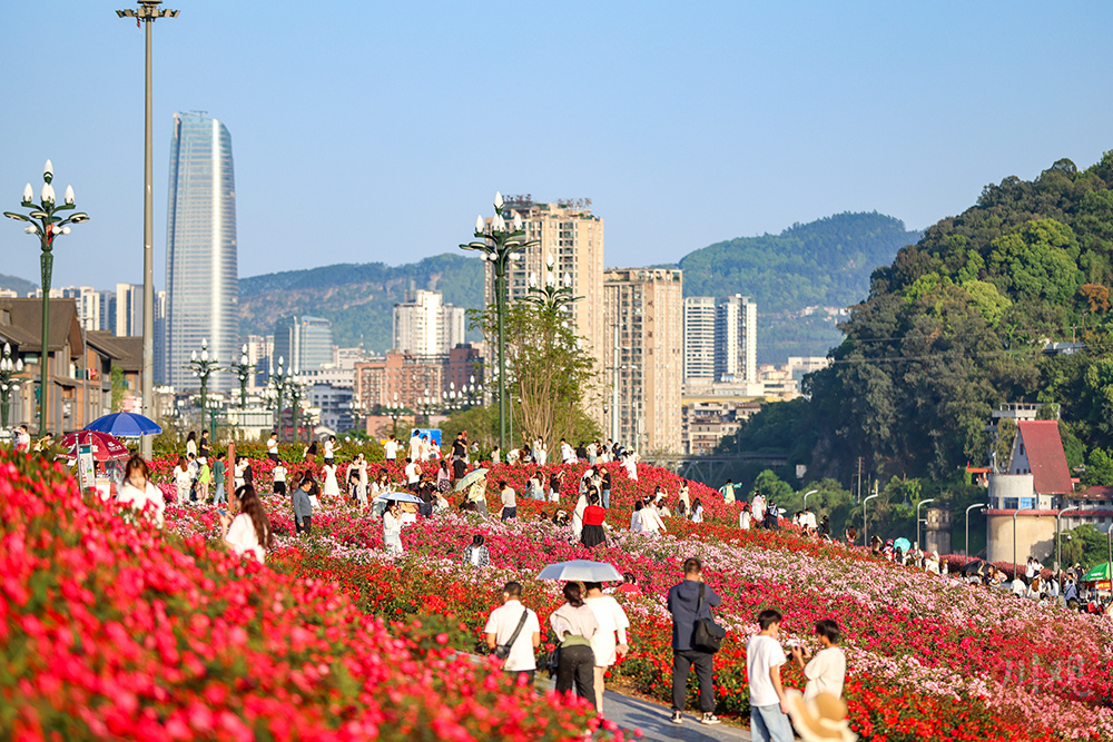 宜宾市翠屏区岷江花海迎来盛花期。