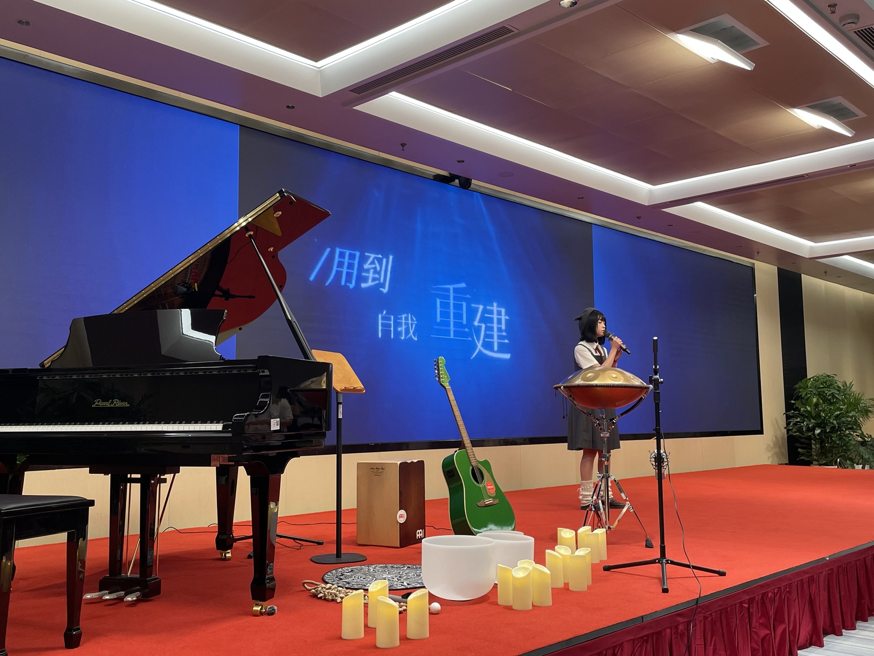 来自马来西亚的患者黄先生,已在成都工作、生活多年。去年,工作压力让他内心极度焦虑,甚至引发了一次严重的重度抑郁发作。通过音乐治疗等多种方式的专业心理治疗,目前他已完全康复。现场,他分享了自己的音乐治疗故事,并用钢琴弹奏经典曲目《IMAGINE》。