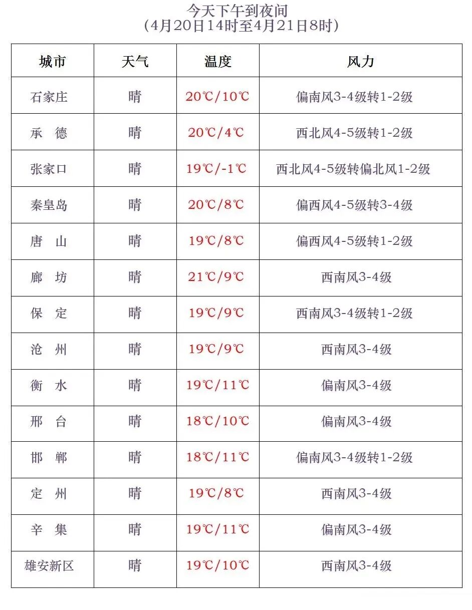 明天白天,石家庄、沧州以南地区晴转多云,其中邯郸多云转阴有小雨或阵雨,其他地区晴间多云。