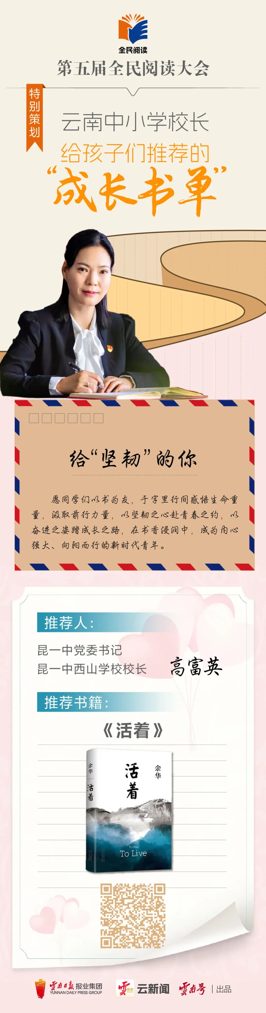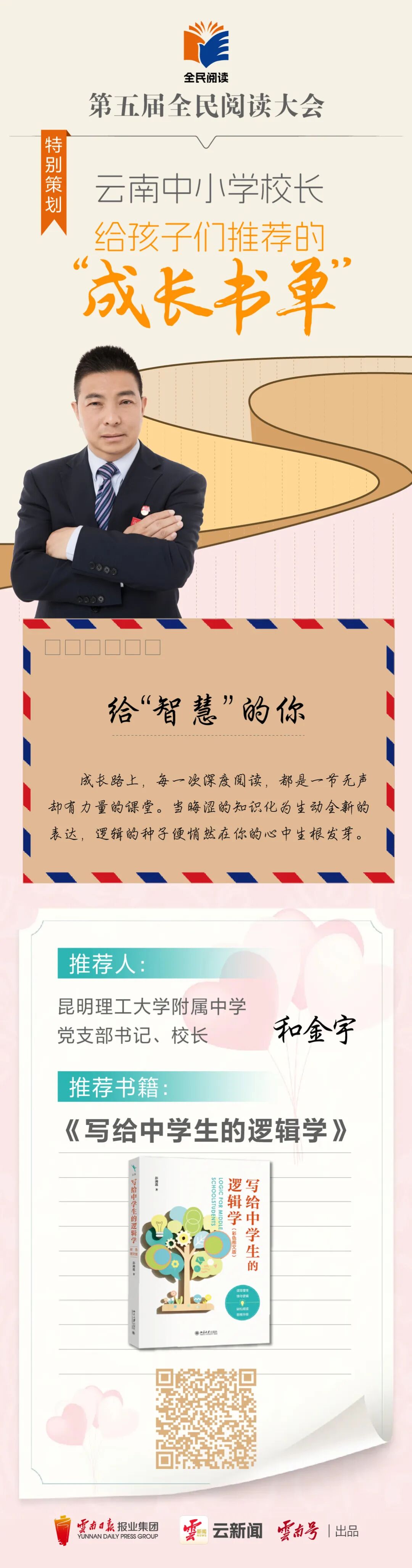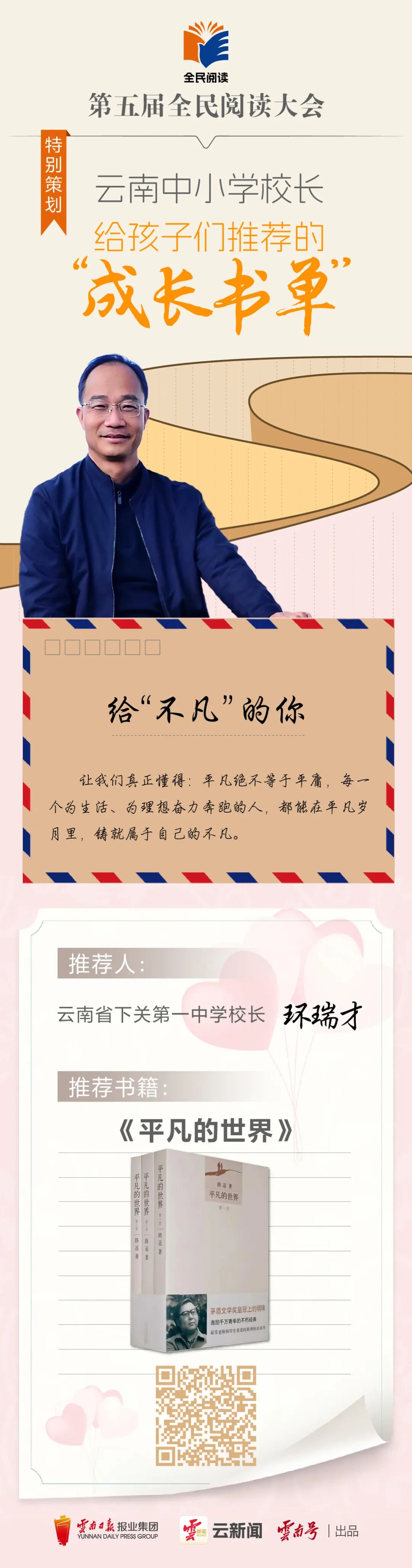 云岭书香浓,全民共阅读。今年,我们迎来全国首个“全民阅读活动周”,云新闻客户端特邀12位云南中小学校长,以教育者的远见、陪伴者的温柔,精心整理专属成长书单,甄选优质书籍、分享阅读心得、传递成长寄语。
