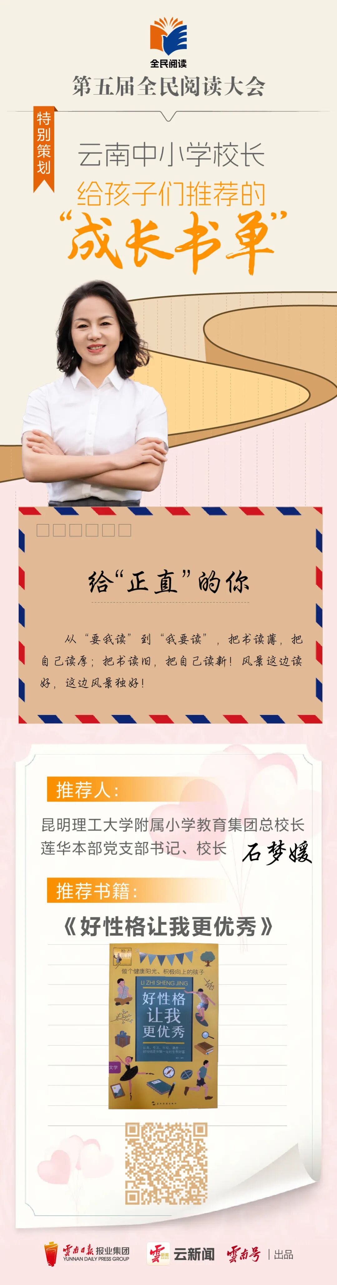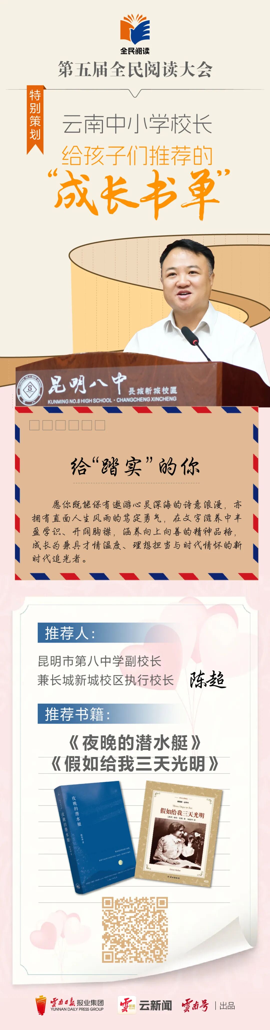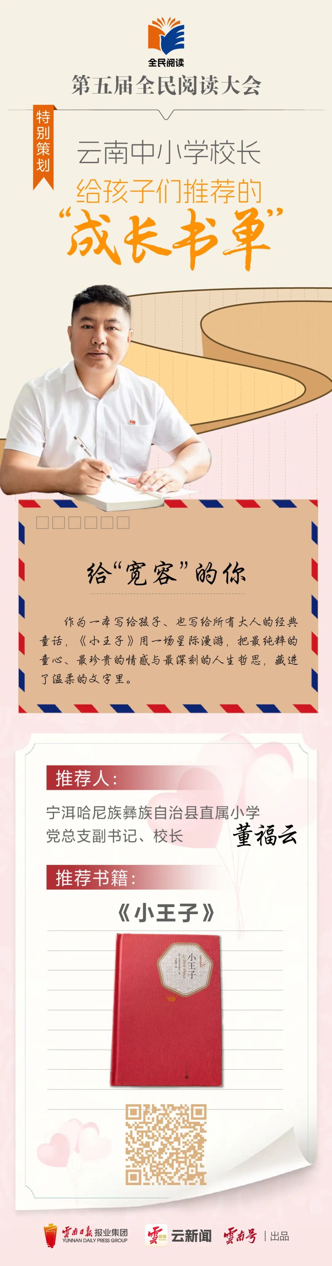 云岭书香浓,全民共阅读。今年,我们迎来全国首个“全民阅读活动周”,云新闻客户端特邀12位云南中小学校长,以教育者的远见、陪伴者的温柔,精心整理专属成长书单,甄选优质书籍、分享阅读心得、传递成长寄语。