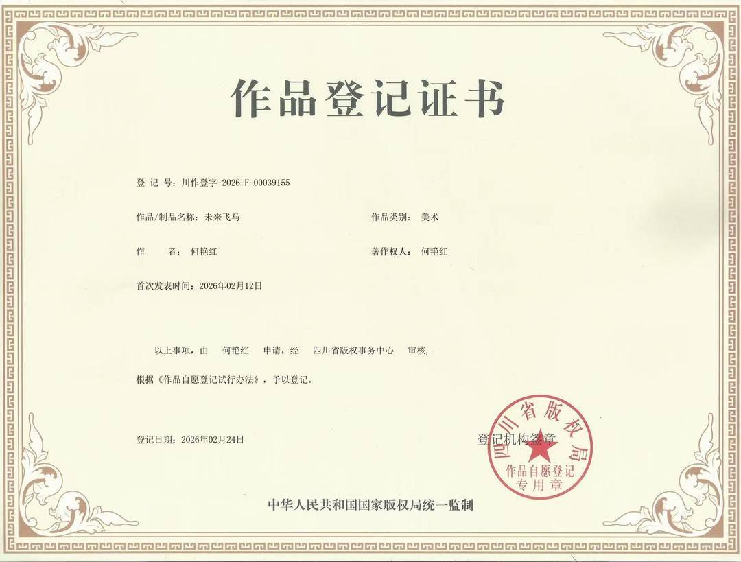 作为2025年四川省唯一入选全国民间文艺版权保护与促进试点地区,郫都以打造全国 “郫都样板” 为目标,着力推进民间文艺数据库、版权服务站点、行业联盟、校地合作、版权交易平台建设,建立覆盖登记、运用、维权的全链条保护机制,在安靖街道、团结街道、三道堰镇、成都影视城等地设立版权维权及登记服务工作站,实现“一街镇一专员一顾问” 服务网络,以版权赋能原创活力,推动民间文艺创造性转化、创新性发展。以雁鸿为代表的新生代传承人,坚守匠心、勇于创新,用年轻化、国际化的表达方式,让民间文艺走进生活、走向世界。据悉,截止目前,雁鸿的400余件作品中,已有《未来飞马》《暗夜玫瑰-棕编手工纱帽》《花丝锦鲤手链》等193件成功登记版权保护。