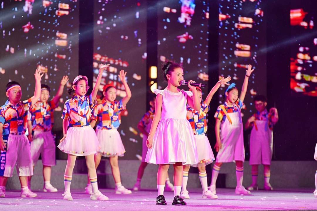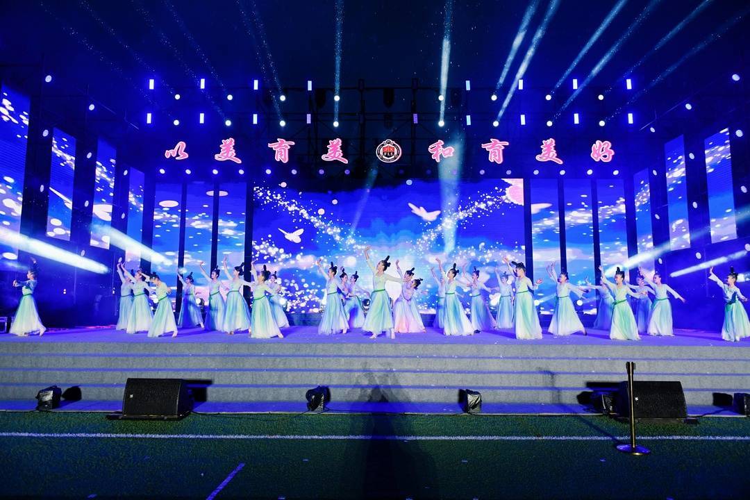 随后的文艺汇演以“以美育美、和育美好”为主线,紧扣“教育,让生命更美好”的办学理念,分为三大篇章递进呈现。舞蹈《沃土生花》拉开序幕,三位IP小使者“嘉宝、嘉美、嘉睿”与美育老师共同串联全场,带领学生齐诵“四美”,传递正向价值观。第一篇章立足自我涵养,通过《言为心声》《文明启航》《云端助梦》《堰上思行》等原创节目,展现学生以“美言、美行、美心、美思”完善自我的成长力量;第二篇章聚焦和谐共生,呈现生生、师生、亲子、家校同心共育的温暖生态;第三篇章展望未来征程,引导学生将个人成长融入时代发展与民族复兴。晚会还特设国际交流环节,匈牙利友好学校师生通过视频送上祝福,彰显学校开放包容、面向世界的国际化办学视野。