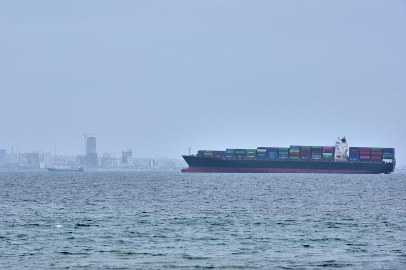 这是4月18日拍摄的停泊在霍尔木兹海峡的货轮。新华社/美联