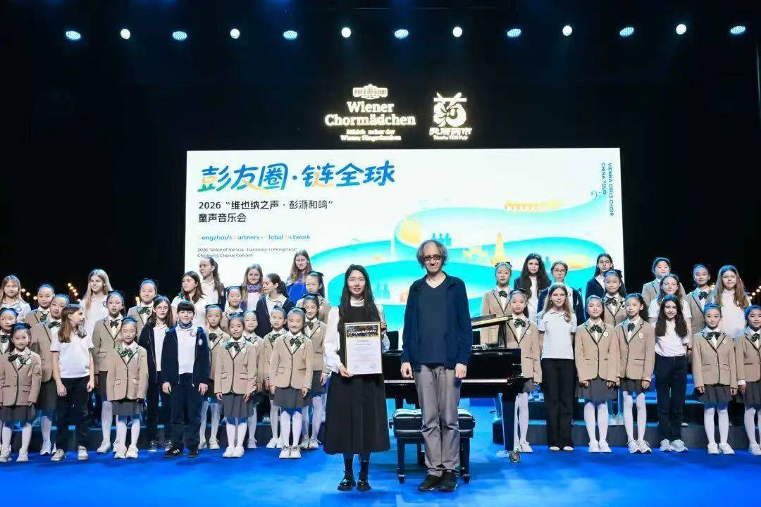 4月18日下午,“彭友圈・链全球”——2026“维也纳之声・彭派和鸣”童声音乐会在彭州市群众艺术馆温情奏响。来自音乐之都维也纳的天籁童声,与彭州本土少年合唱团的清澈歌声交汇融合,以音乐为桥、以童声为媒,上演了一场跨越国界、跨越文化的艺术盛宴,现场座无虚席,三百余位观众共同见证这场中奥青少年以歌会友的美好时刻。