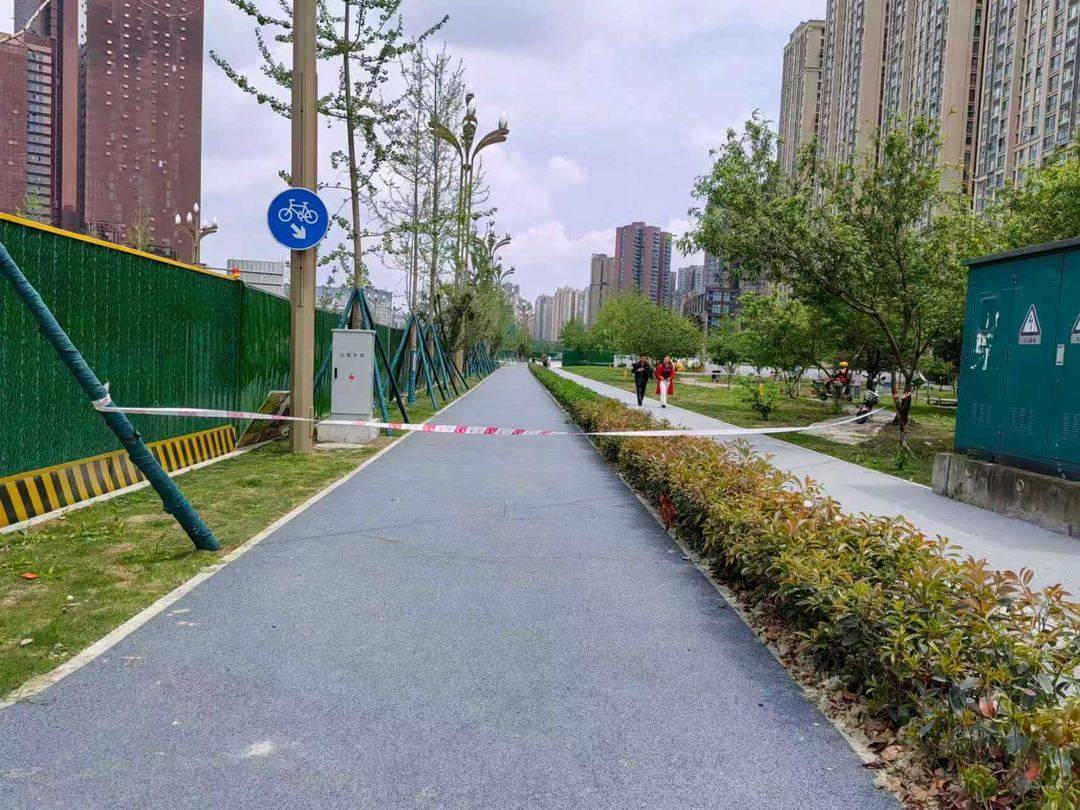 此前,春天广场小区周边因温泉大道下穿隧道项目施工,原有人行通道长期封闭,大量居民、非机动车被迫绕行小区广场。人车混行、道路拥挤、路面破损下沉等问题日益突出,剐蹭、碰撞等安全事故频发,成为悬在居民心头的一大隐患。“原来每天出门都提心吊胆,广场上行人、电动车、三轮车混在一起,路又破又滑,老人小孩根本不敢放心走。” 说起此前的出行状况,小区居民王阿姨满是无奈。