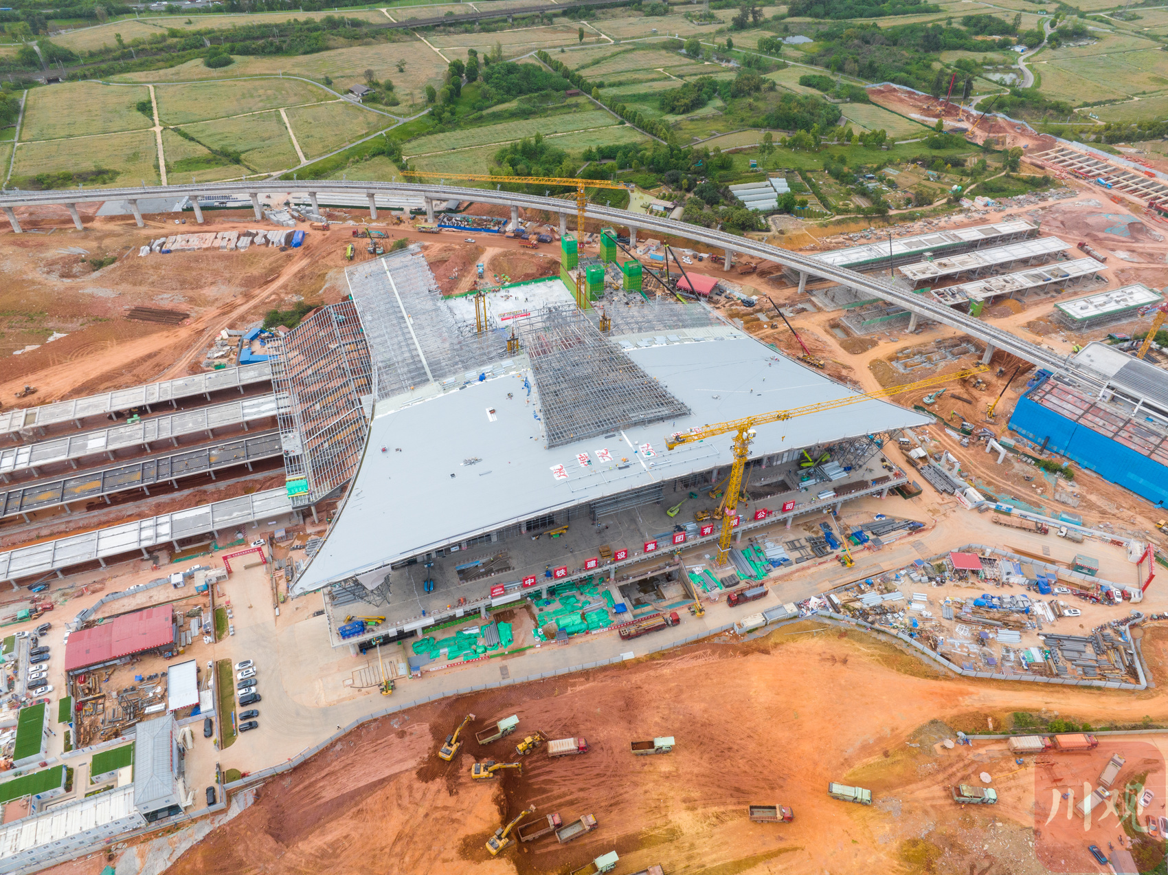 4月20日,成都龙泉驿站站房主体结构顺利封顶,项目建设由主体结构施工阶段全面转入机电安装、装饰装修及配套工程施工阶段。