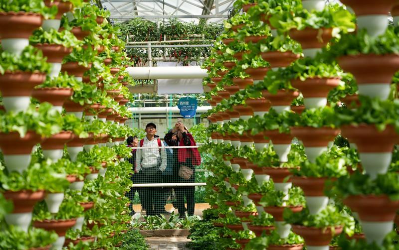 4月20日,人们在蔬菜科技博览会上参观。