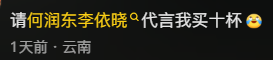 记者注意到,连日来,众多网友到茶饮品牌霸王茶姬官方账号评论区喊话,让霸王茶姬请何润东和李依晓代言,甚至有网友把宣传图都P好了。