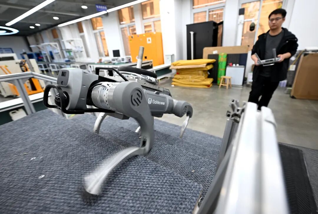伽利略公司的四足机器人采用自研仿生平衡算法和全域姿态自适应调节技术,能够在崎岖地形稳定行走、顺利跨越复杂障碍,动态抗扰能力表现突出。其轮足复合机器人操控响应精准、适配多种场景,可在复杂路况下高效通行,综合操控性能处于行业领先水平。