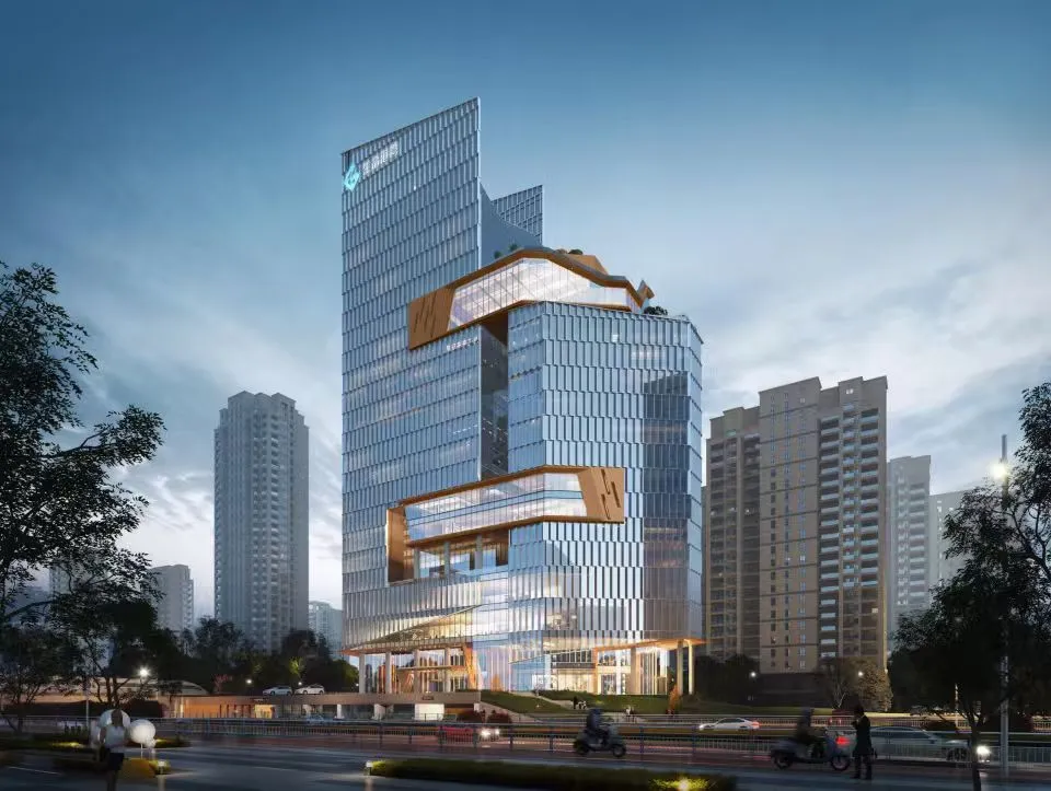 该项目位于临泉路与禹王亭路交口东南侧,总建筑面积约3.84万平方米,建筑高度达115.65米,由两座高低错落的塔楼组成,造型灵动舒展。