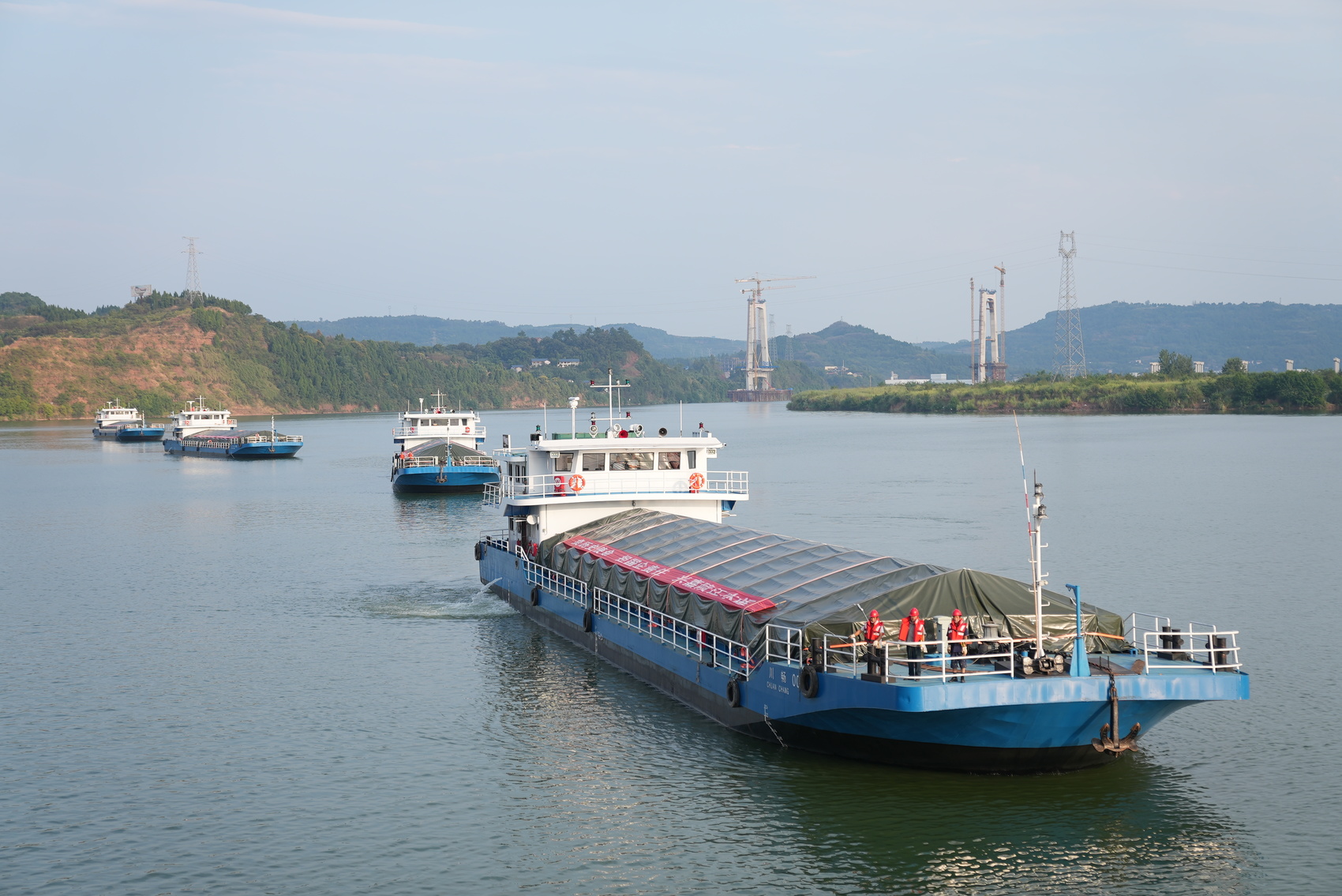 货船行驶在嘉陵江南充段。余中华 摄