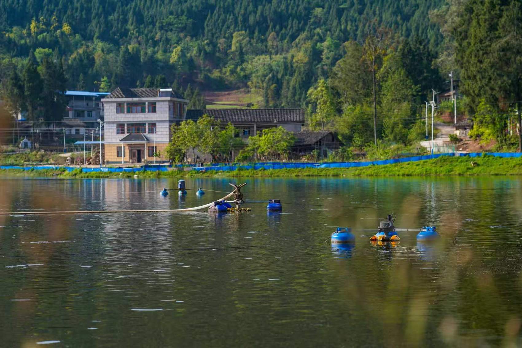 不沿大江大河,鱼塘是营山发展水产养殖的“主战场”,保水便是重点。去年以来,营山县多次投入资金,协助当地水产企业加固鱼塘堤坝、新建提灌站。“我的鱼塘今年已经完成了堤坝加土夯实、覆膜、铺毯、硬化处理以及安装防逃设施,可以有效降低极端天气下鱼类逃逸造成的财产损失。”刘文平说。