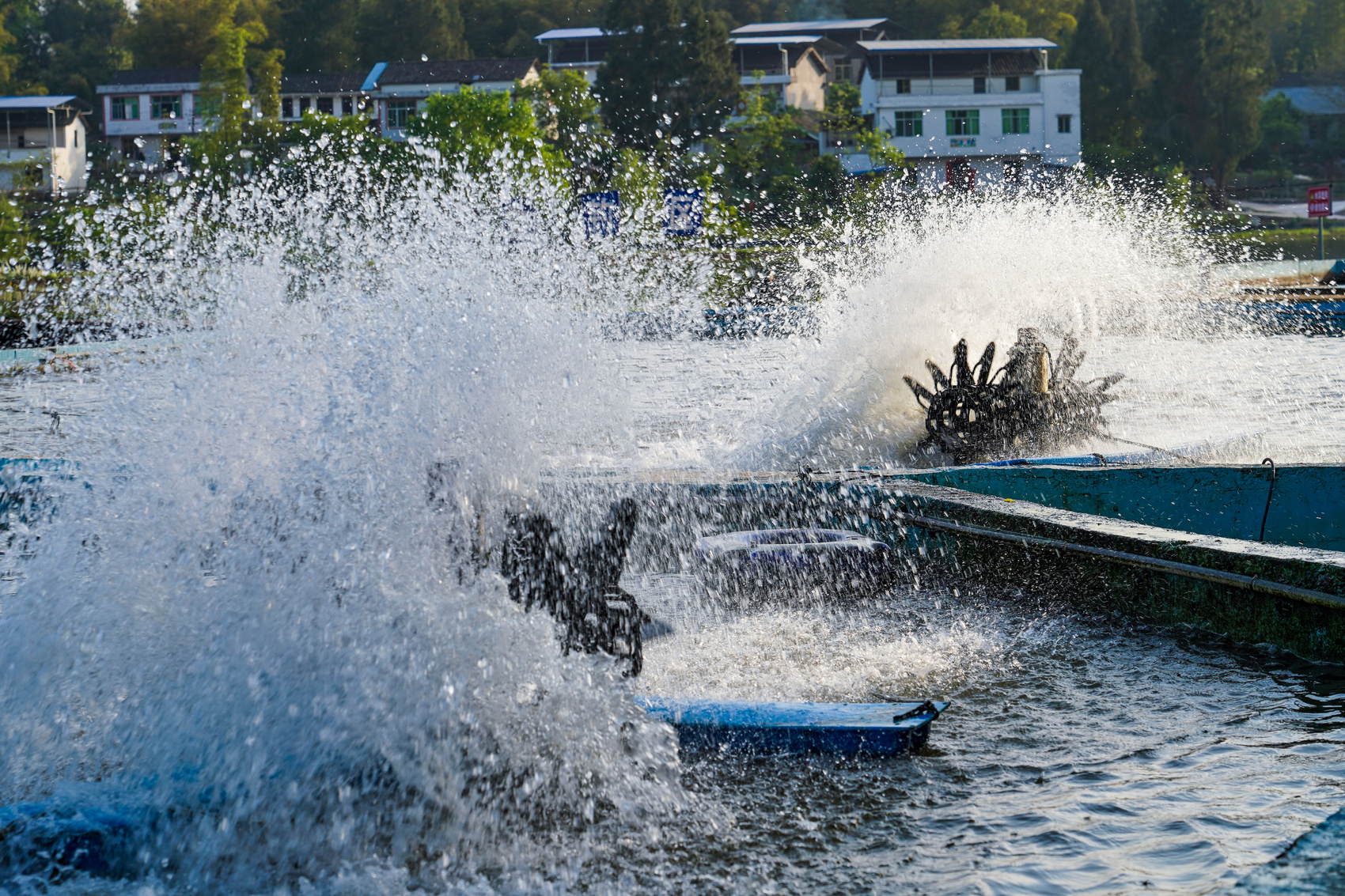 鱼塘中的增氧机。
