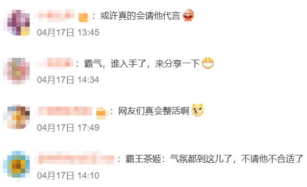 记者注意到,连日来,众多网友到茶饮品牌霸王茶姬官方账号评论区喊话,让霸王茶姬请何润东和李依晓代言,甚至有网友把宣传图都P好了。