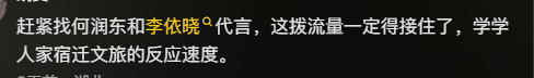 随着何润东的持续走红,网友们将目光投向了茶饮品牌霸王茶姬。因品牌名称自带“霸王”意象,与何润东的西楚霸王人设高度契合,大量网友涌入霸王茶姬抖音官方账号最新视频的评论区,集体喊话品牌邀请何润东和李依晓共同代言。