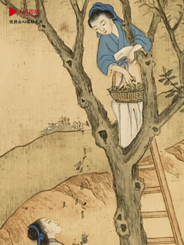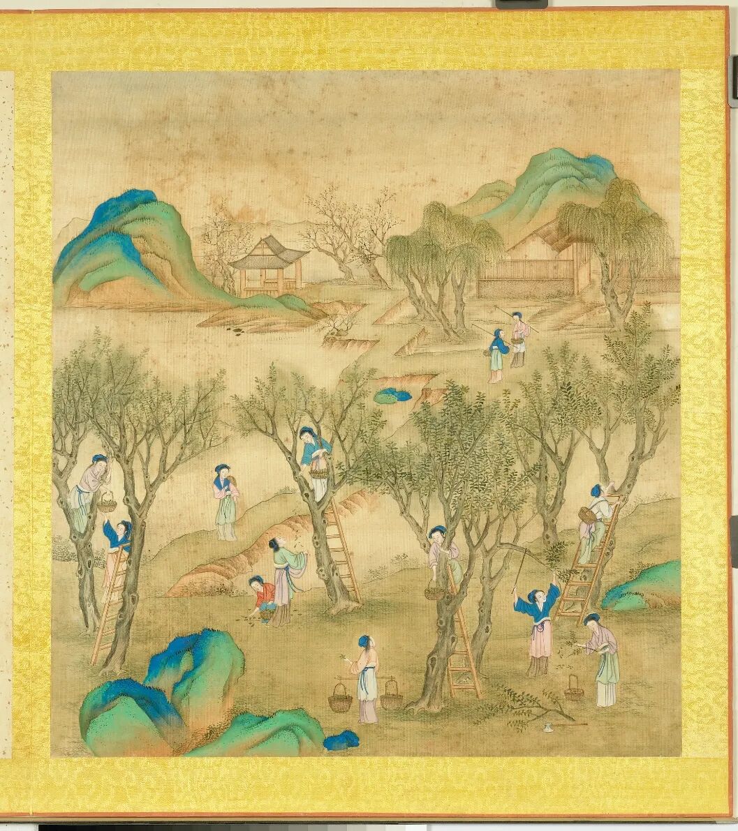 《清张师诚跋豳风十二月图说册之“蚕月条桑”》(清)佚名