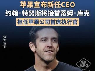 当地时间4月20日,央视记者获悉,美国苹果公司宣布任命内部高管、长期负责硬件业务的约翰·特纳斯为该公司下一任首席执行官,接替自2011年以来一直执掌公司的蒂姆·库克。