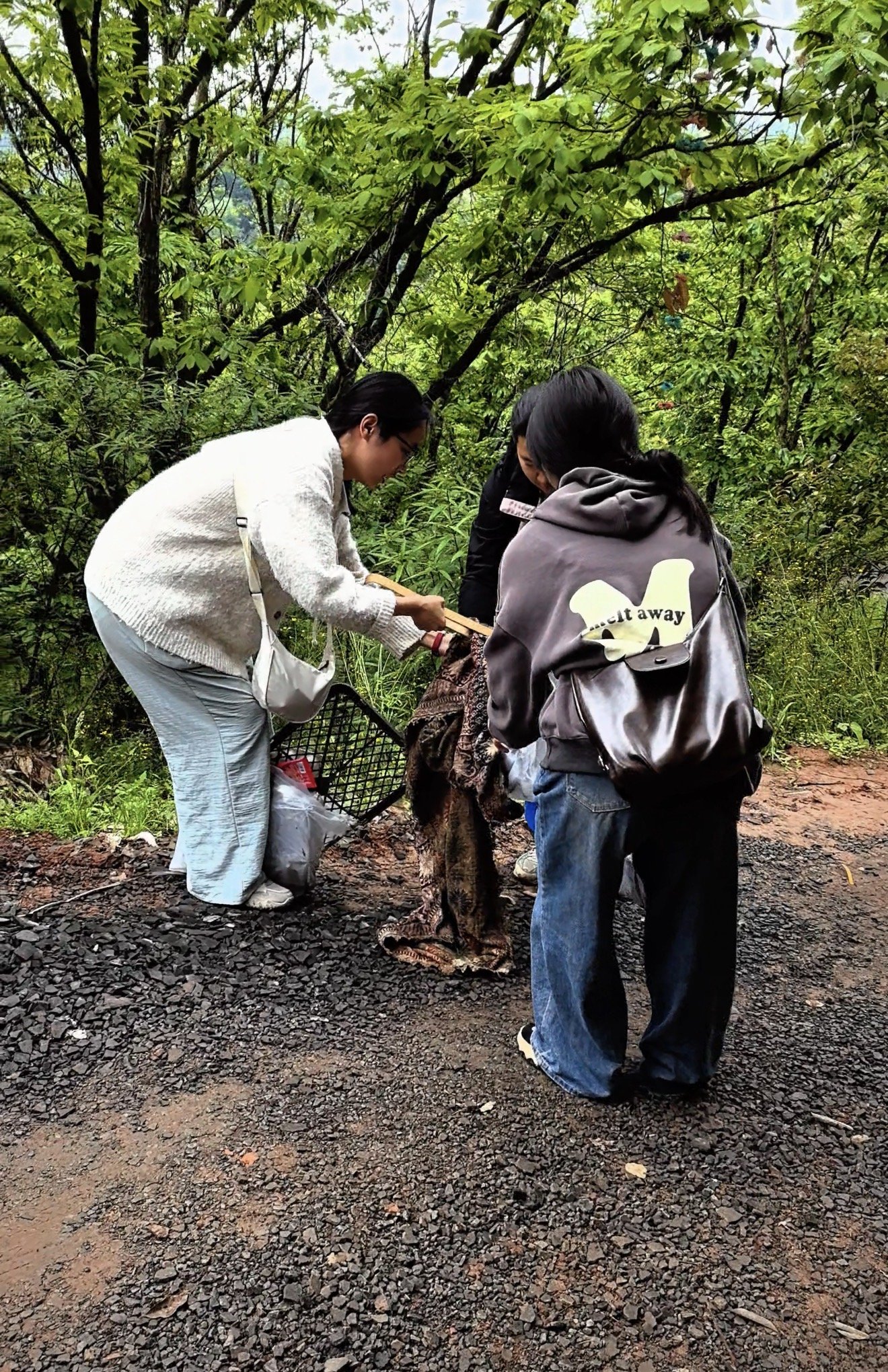 山林中捡拾的垃圾总是“复杂多样”,这是志愿者们捡到的一条毯子。