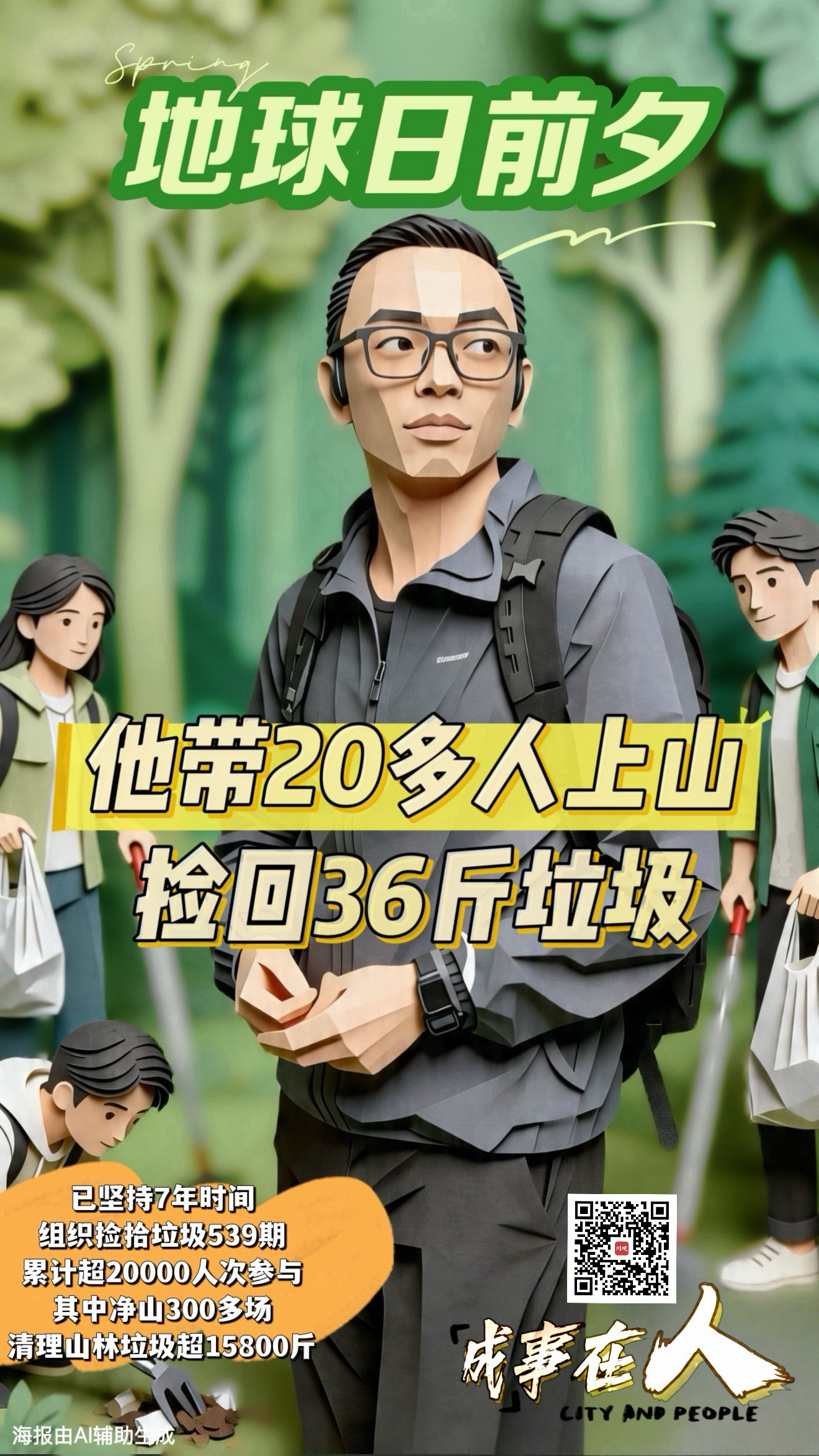 鲁利松坚持环保徒步已经快7年,截止4月21日,总计开展活动539期。