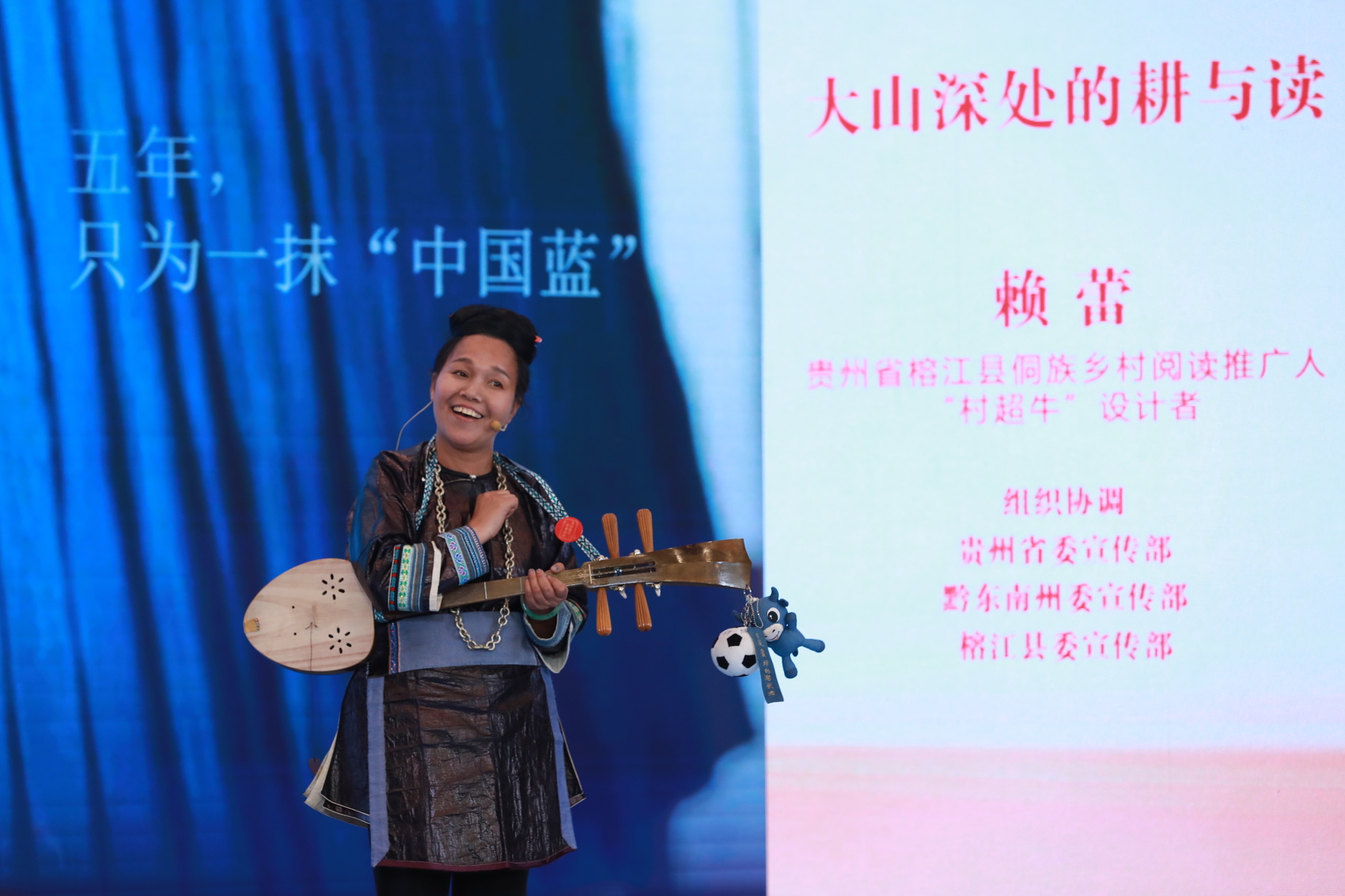 在贵州大山深处,阅读是连通世界的光,也是守住根脉的路。在贵州“村超”发源地榕江县,赖蕾被称为“布疯子”。十多年前她辞掉银行的“铁饭碗”,回到家乡捡起侗寨快断根的老手艺——侗族织染工艺。如今,侗布有了稳定市场,她设计的吉祥物“村超牛”也跟着“村超”火了。
