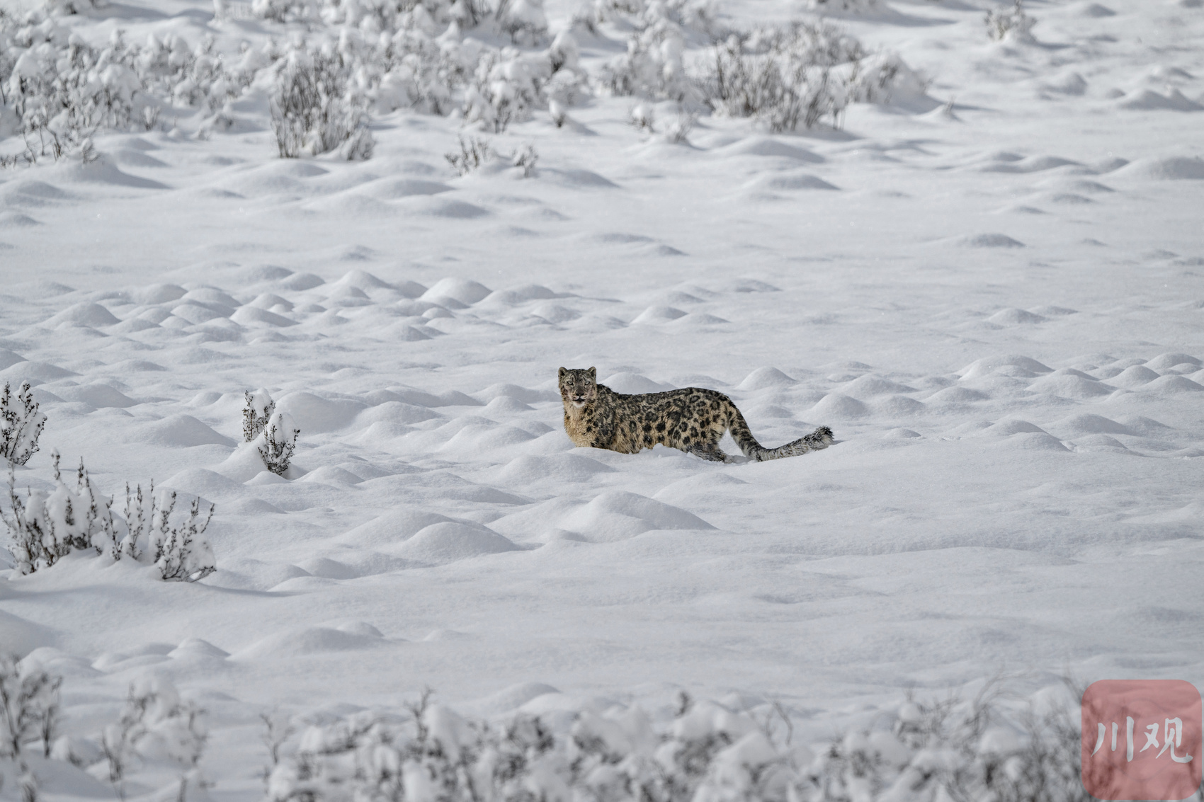 4月13日,有摄影爱好者在阿坝县莲宝叶则,成功拍摄到雪豹活动的珍贵影像。莲宝叶则地处川甘青交界,雪峰巍峨、冰川纵横,是黄河上游重要生态屏障和青藏高原珍稀野生动植物的天然家园。