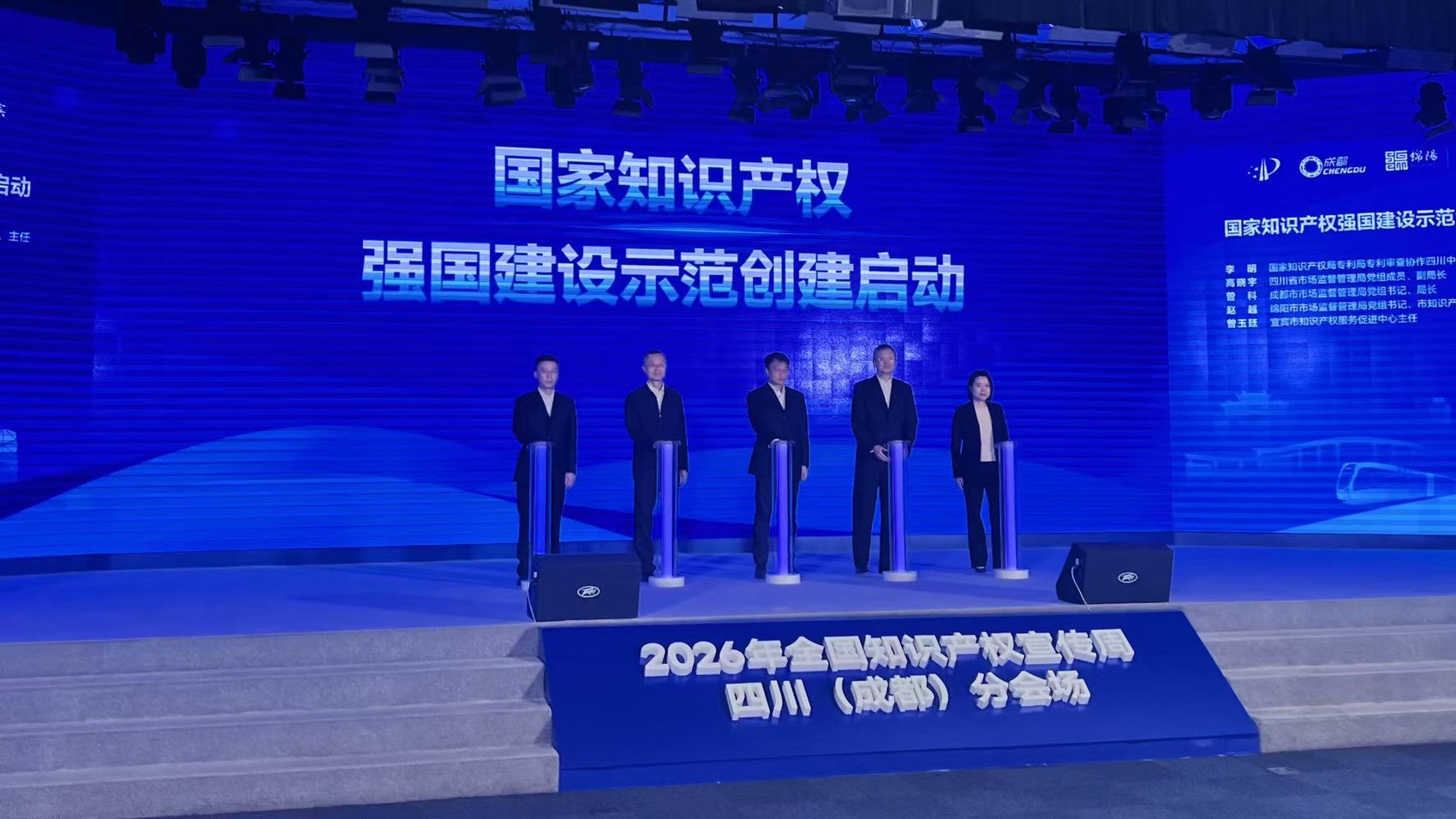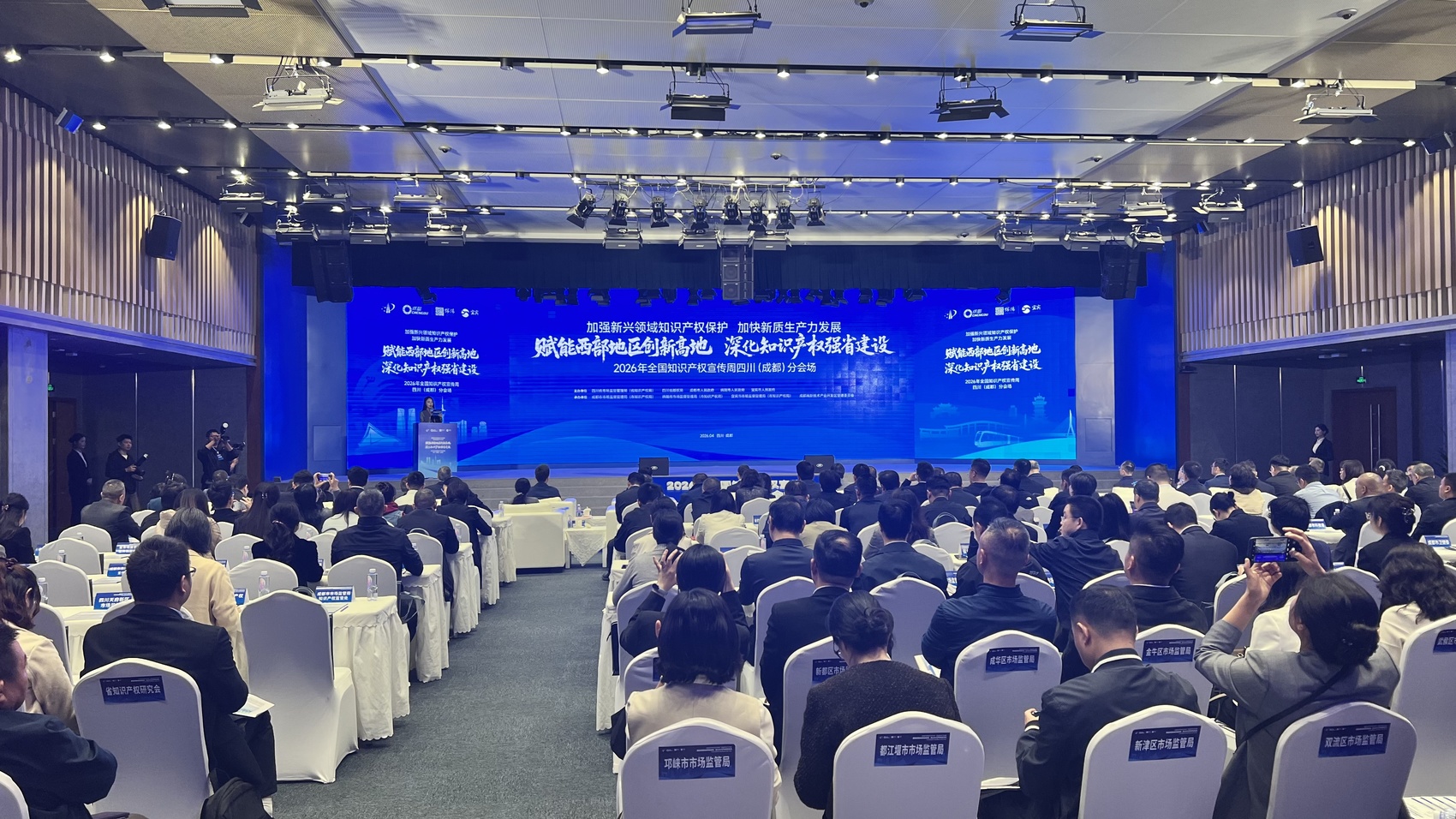 4月21日,2026年全国知识产权宣传周四川分会场活动在成都举行。本次活动由四川省市场监管局(省知识产权局)、省版权局与成都市、绵阳市、宜宾市政府联合主办,活动紧扣“加强新兴领域知识产权保护 加快新质生产力发展”主题,生动展示四川以知识产权强省建设为抓手,加快打造西部地区创新高地的积极成效。