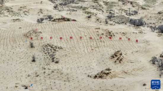 4月19日,在内蒙古通辽市科尔沁左翼后旗束力古台防沙治沙项目区,治沙工人们铺设草方格、栽种樟子松,为黄沙披上“绿装”。据了解,该项目区沙地面积近3000亩,是科尔沁左翼后旗最后一块待治理的流动、半流动沙地,其治理完成意味着该旗境内1160万亩科尔沁沙地的流动、半流动沙丘将全部得到治理。