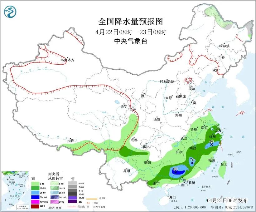 中央气象台今晨继续发布暴雨黄色预警:预计今天,重庆东南部、贵州东部、湖南中南部、江西中北部、安徽南部、浙江西部和北部、福建西部、上海南部、广西东北部等地部分地区有大到暴雨,湖南中部、江西中部、广西东北部等地局地有大暴雨(100~140毫米);上述部分地区伴有短时强降水(最大小时降雨量20~40毫米,局地可超过50毫米),局地有雷暴大风或冰雹等强对流天气。另外,西北地区东南部、黄淮、江淮等地部分地区有小到中雨,其中内蒙古东北部和黑龙江西北部等地部分地区有小到中雪或雨夹雪。