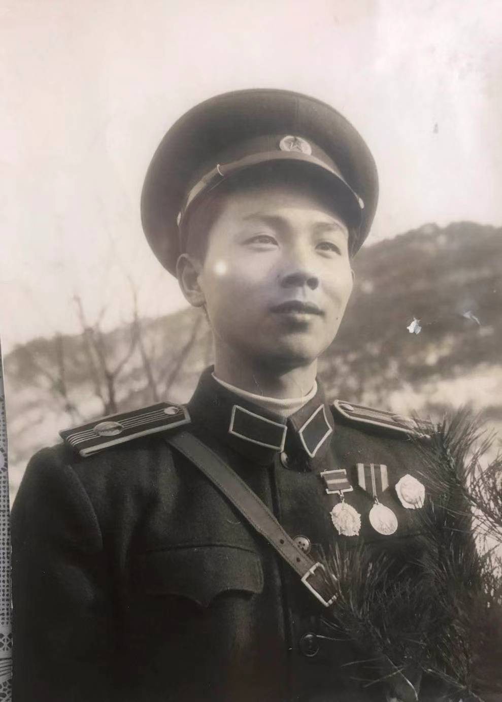1958年,邬大为从朝鲜回国前的军装留影。受访者供图