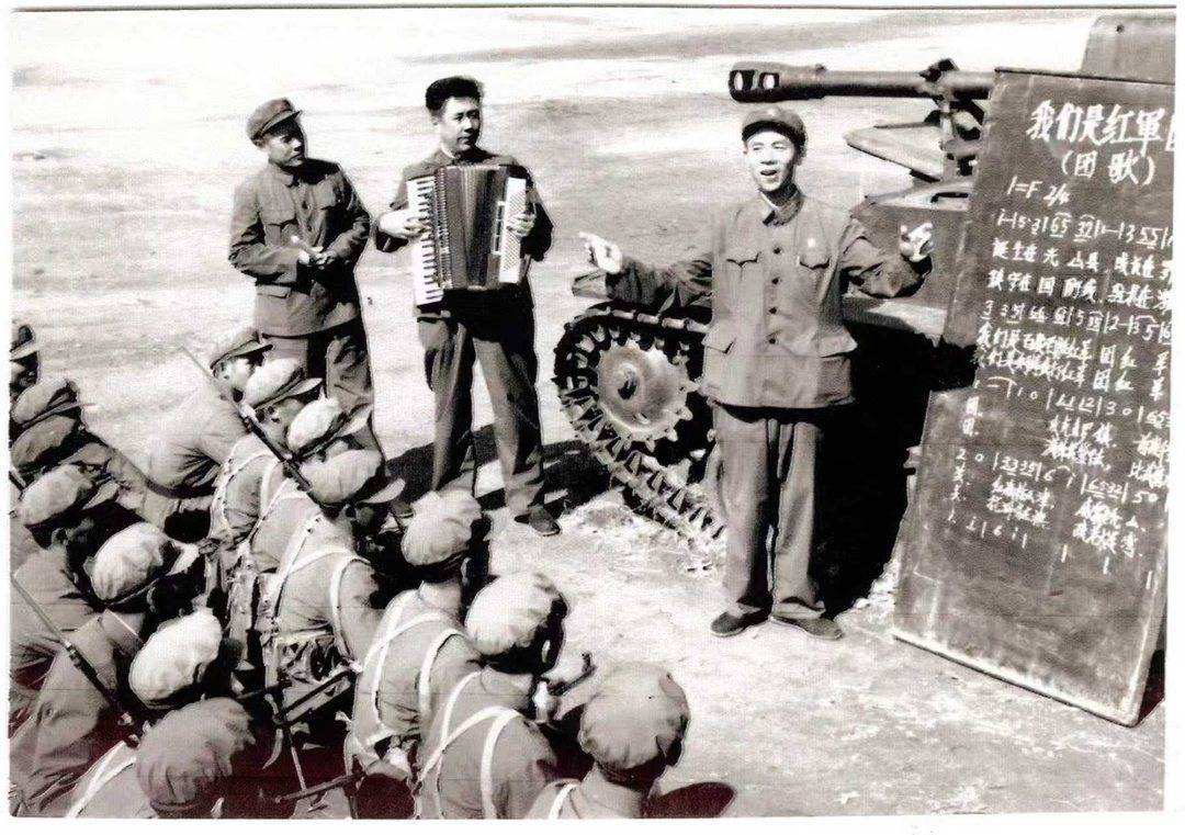 1970年6月,邬大为在珍宝岛一线给部队官兵教歌。受访者供图